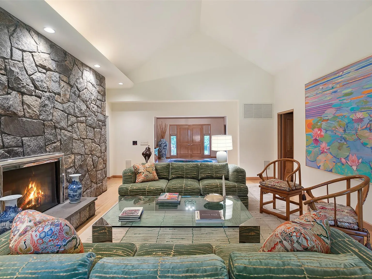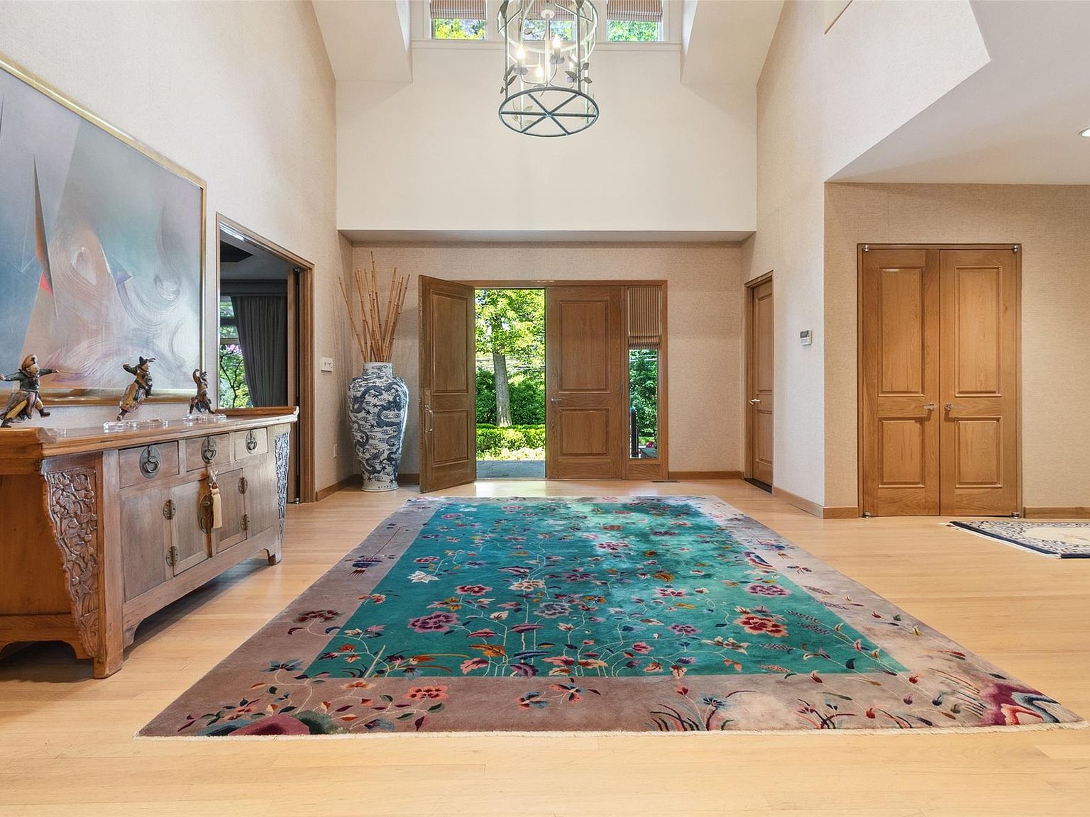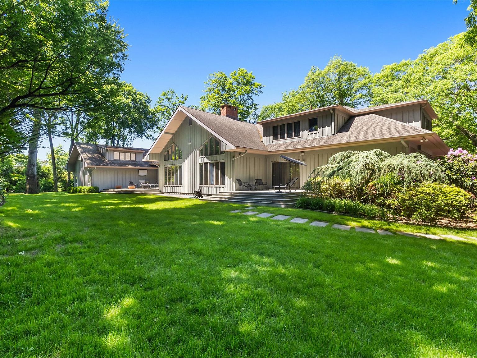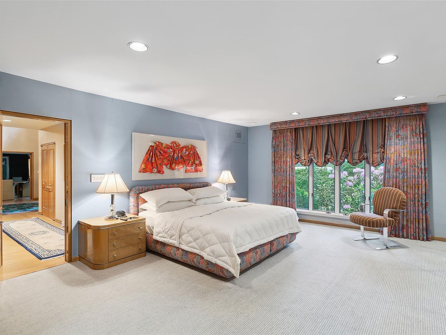 Welcome to a meticulously maintained, architecturally striking contemporary residence nestled in one of Harrison’s most sought-after neighborhoods. This expansive 5-bedroom, 5.5-bath home offers over 5,000 square feet of light-filled living space, designed with comfort, style, and function in mind. Enter through a dramatic two-story foyer with a graceful wood staircase and elegant powder room, setting the tone for the refined interior. The spacious living room impresses with a cathedral ceiling, stone fireplace, and floor-to-ceiling windows that flood the space with natural light. The formal dining room features custom window treatments and rich fabric wall coverings, offering a sophisticated space for entertaining. A nearby study doubles as a media lounge with a built-in speaker system, wet bar, and sliders that open to a bluestone patio, ideal for seamless indoor-outdoor entertaining. A family room with its own stone fireplace offers a second, more intimate living area for relaxing evenings. The expansive eat-in kitchen is a culinary dream, boasting a cathedral ceiling with skylights, a center island, breakfast area, and direct access to a large outdoor patio—perfect for al fresco dining and gatherings. The primary suite is a true sanctuary with a dressing room, large walk-in closet, and a second dressing area/sitting room with custom built-ins and burled veneer closets. The suite features two luxurious bathrooms: one with a spa tub and shower, the other with a separate shower and private water closet. The first-floor wing includes a mudroom, laundry area, and an additional bedroom with full bath, along with back stairs providing private access. Upstairs, a large suite offers a fitness room, bedroom, and full bath, while two additional bedrooms share a well-appointed full bath. A long hallway offers abundant closets and storage throughout the second floor. Additional Features Include: Built-in speaker system throughout the home, Central station burglar and fire alarm system, Custom millwork, cabinetry, and architectural details, 4-car garage with ample space for vehicles and storage, Professionally landscaped grounds offering privacy and serenity. This is more than just a home—it’s a private retreat thoughtfully designed for modern living. Don’t miss the opportunity to make this extraordinary Harrison property your own.