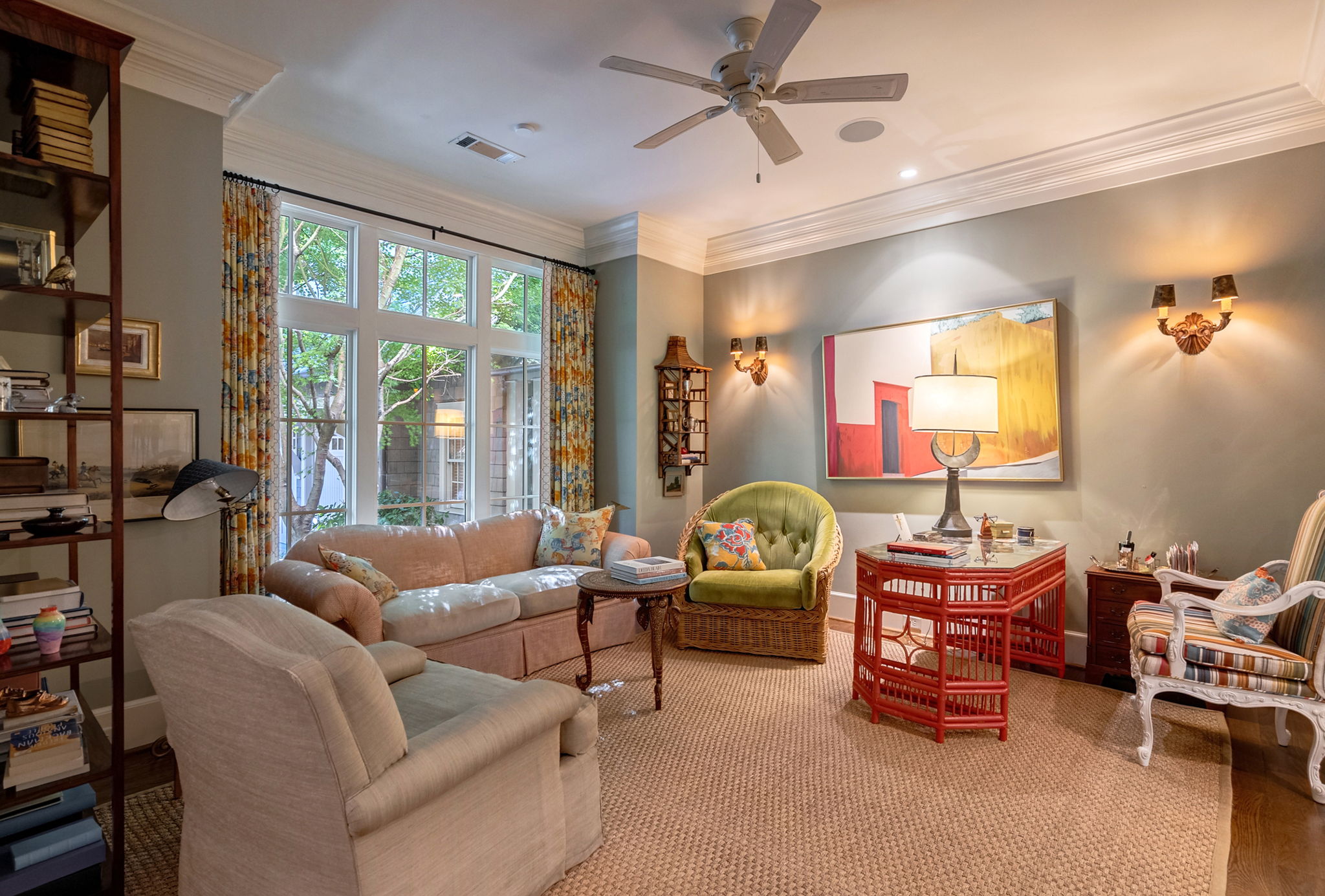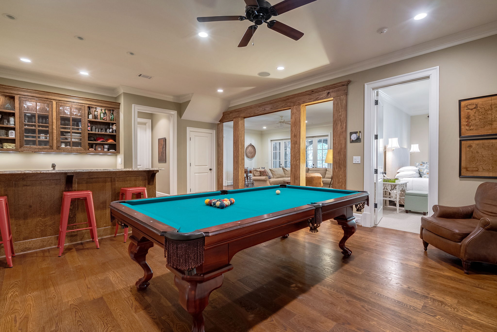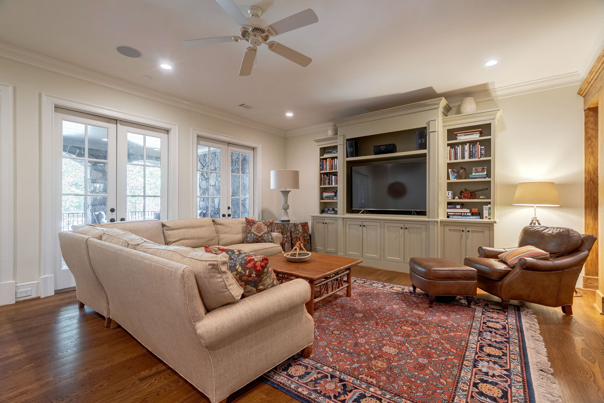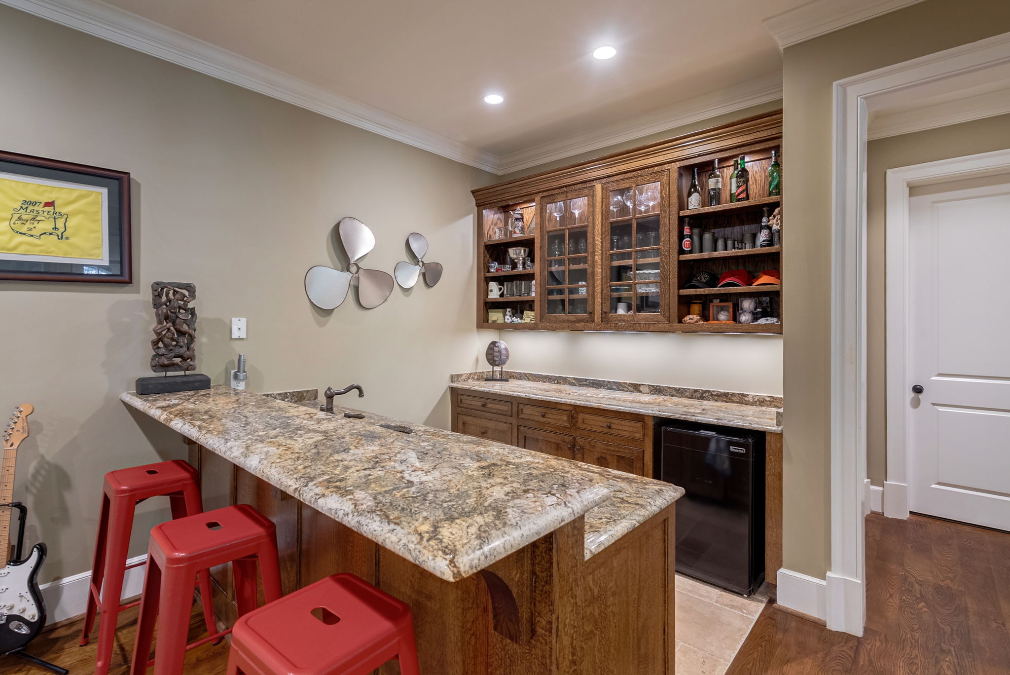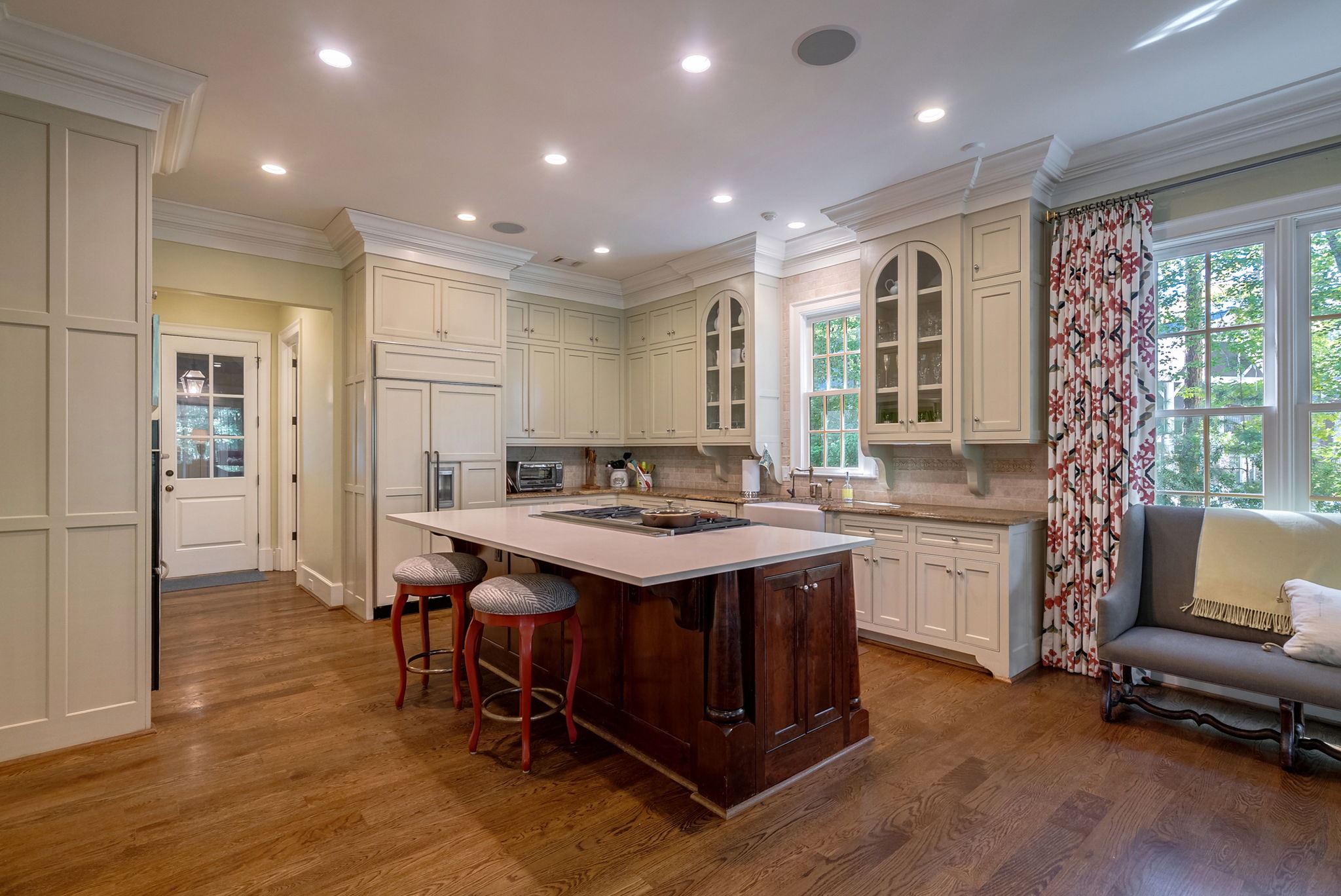 Inside, the chef’s kitchen features Wolf, Sub-Zero, and Cove appliances, a quartzite island, and farmhouse sink, opening to a keeping room with a wood-burning fireplace. The formal dining room includes a gas-log fireplace, custom built-ins, and a coffered ceiling—ideal for elegant gatherings.