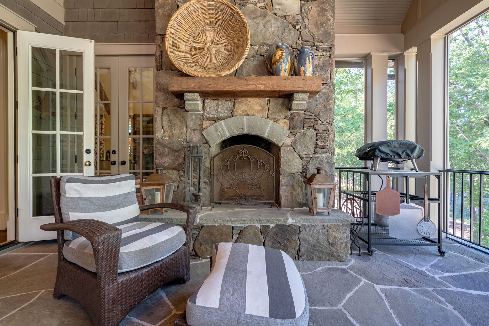 Enjoy indoor-outdoor living with two fully equipped outdoor kitchens, a screened porch with wood-burning fireplace, and a terrace-level patio designed for lakeside entertaining. The primary suite on the main floor offers private porch access, dual vanities, a soaking tub, and custom cabinetry. The terrace level adds a family room with wet bar, three ensuite bedrooms, and direct lake access for paddleboarding or boating.