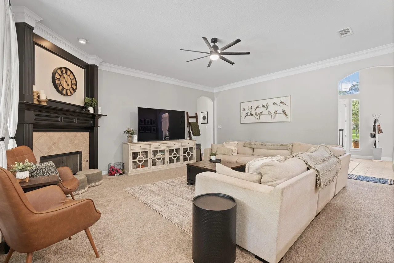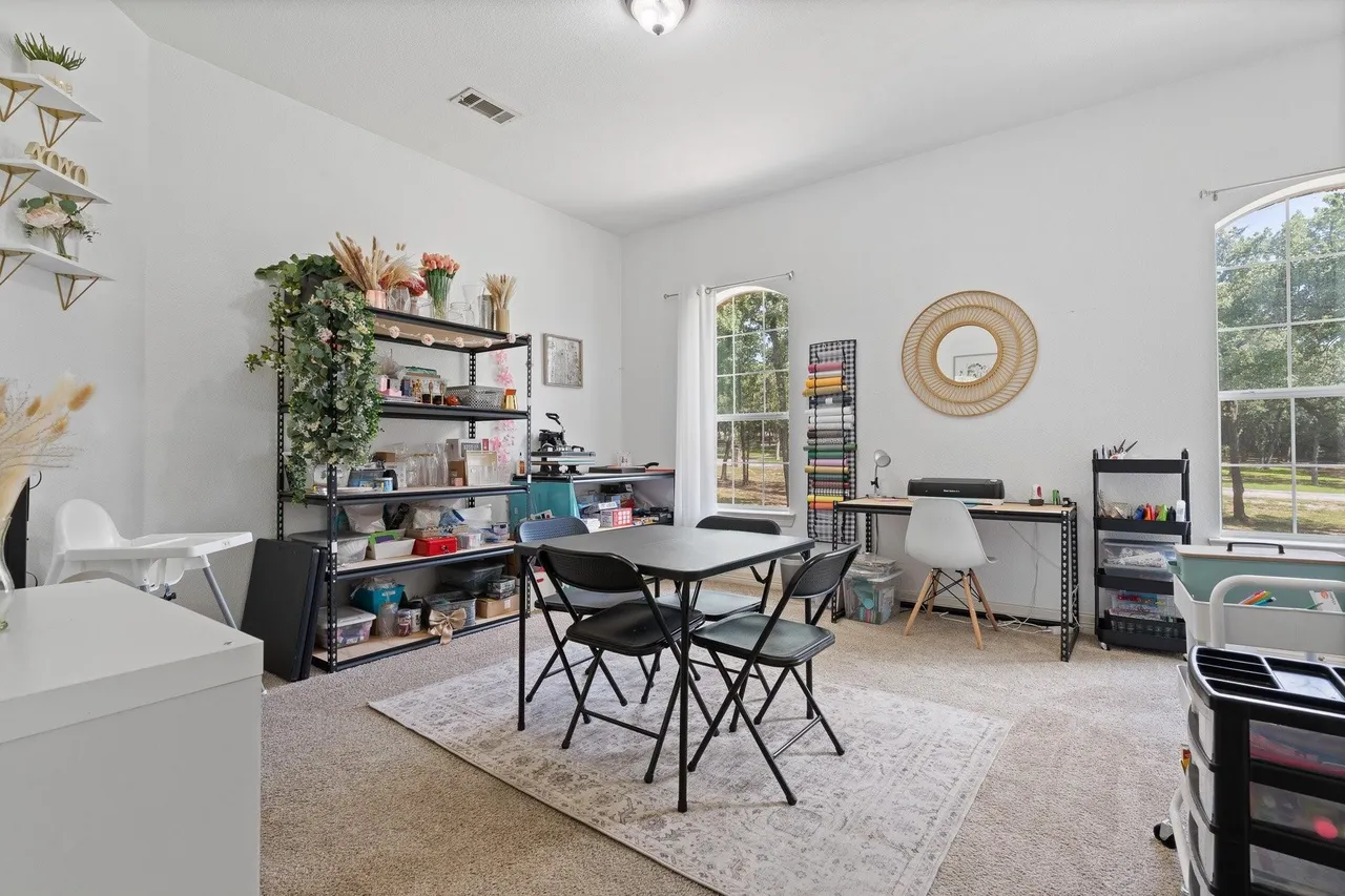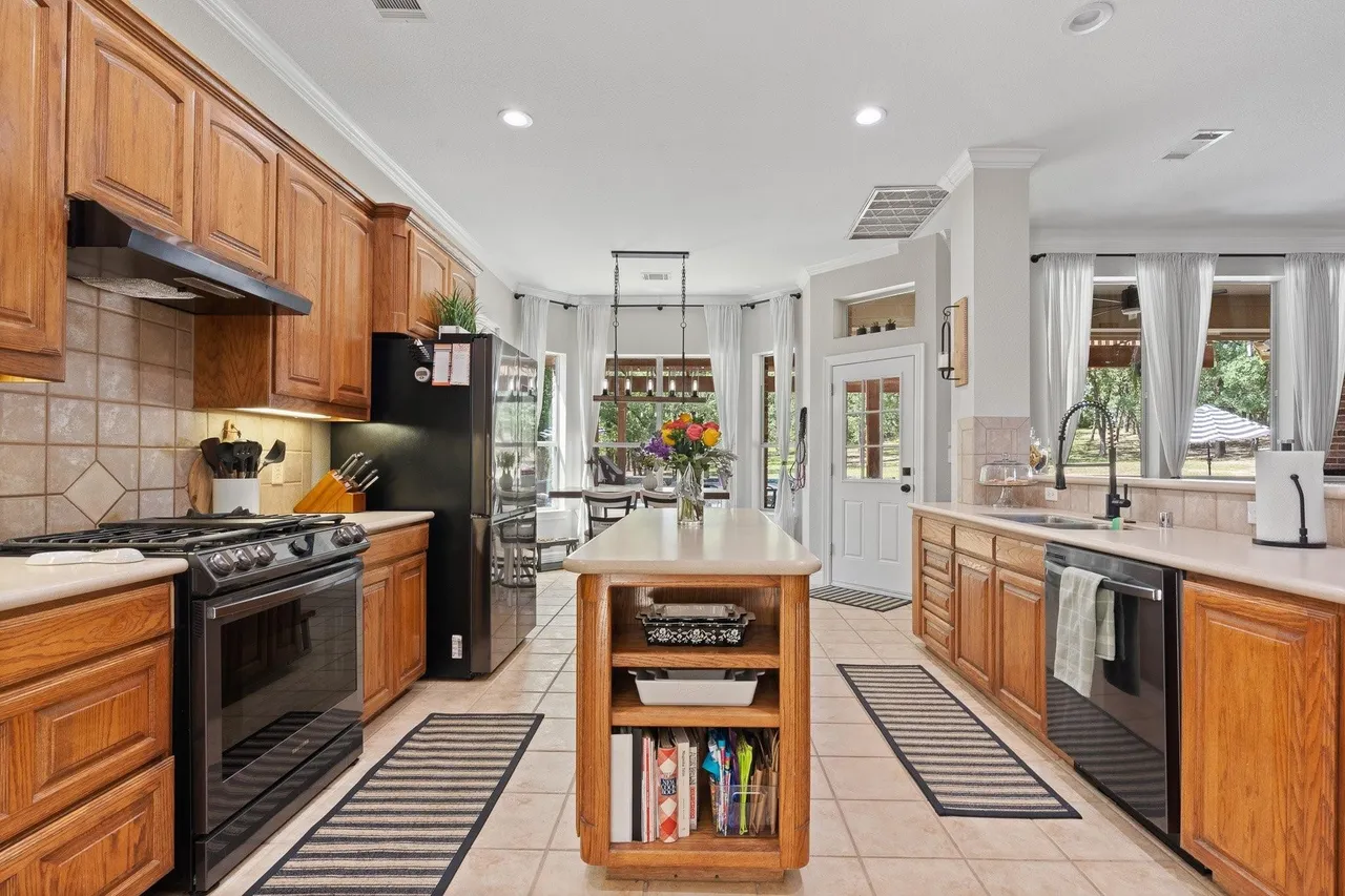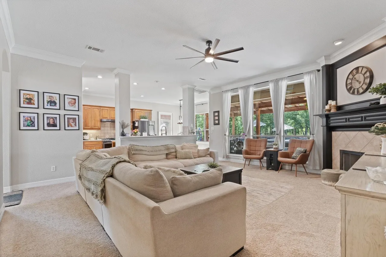 Welcome to this stunning custom home on 2.6 wooded acres in the gated community of Boling Ranch Estates—located just outside of city limits and only 20 minutes from downtown Fort Worth. An impressive entry and foyer lead to a vaulted formal dining room, a private study with serene views of the oak-shaded lawn, and an open-concept living area that flows seamlessly into a chef’s kitchen featuring custom cabinetry, stainless steel appliances, a gas range, and a large island perfect for entertaining. The spacious first floor includes a luxurious primary suite with a vaulted ceiling, jetted tub, separate walk-in shower, and oversized walk-in closet, along with a private guest or in-law suite for added flexibility. Upstairs, you’ll find two additional bedrooms connected by a Jack-and-Jill bath and a large bonus room ideal for a game or media space. Recent updates include fresh paint, upgraded light fixtures, new blown-in attic insulation, and a serviced HVAC system. Step into your own private backyard oasis complete with a brand-new, resort-style pool, a stylish pergola, and a wrought iron fence enclosing the beautifully wooded lot. Surrounded by nature, the neighborhood is known for its peaceful atmosphere and frequent deer sightings—these gentle visitors wander freely throughout the entire community. With tall ceilings, abundant natural light, and a layout designed for multigenerational living, this home offers the perfect blend of country charm and city convenience.