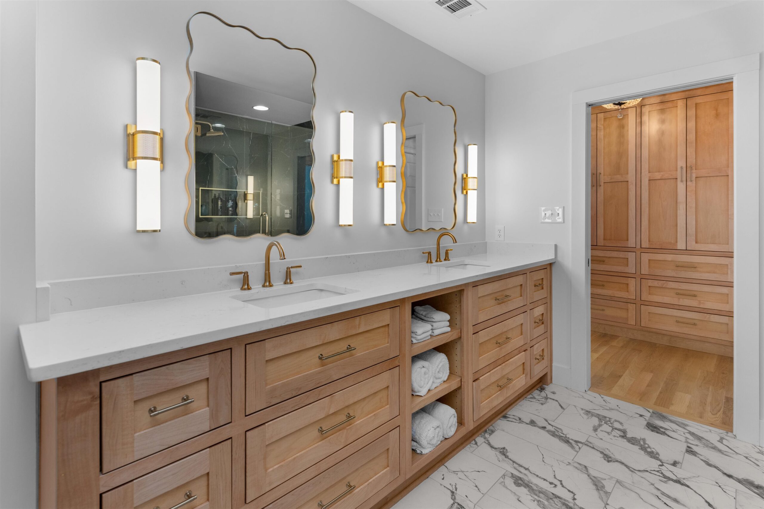 - Owner’s suite with lake views, spa-like bathroom, and walk-in closet