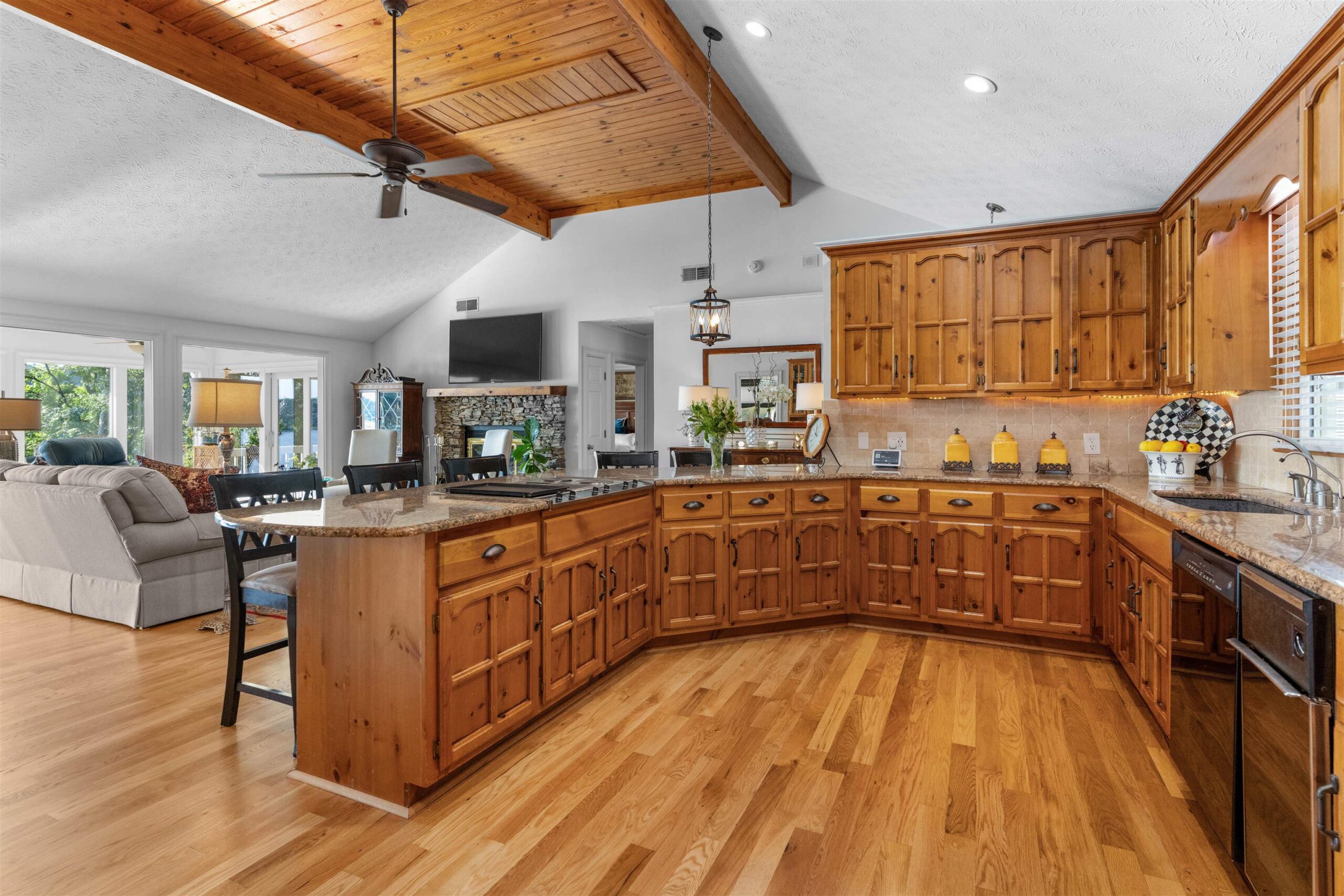 - Terrace level with second kitchen, enclosed sunroom, cedar closet, bunkroom, and lakefront storage