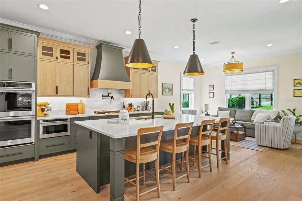Welcome to the Lake Hollingsworth legacy. Steps from Lake Hollingsworth and the Lakeland Country Club, this 5-bedroom, 5-full bathroom, newer-construction home offers luxury living amid historic elegance. From Amish cabinetry to natural hickory engineered wood floors throughout, meticulous attention to detail is evident in every corner of this home. Upon entry, you are welcomed by the current study, which has its own full bath and walk-in closet. The kitchen is the heart of the home and seamlessly flows into the breakfast nook, great room and additional den. A chef’s dream, this kitchen features stunning cabinetry, quartz countertops, a gas cooktop, double built-in ovens, a built-in microwave, a large walk-in pantry, and a stylish hood with a pot filler. The dry bar with a wine fridge completes this open-concept marvel, perfect for holidays and entertaining. Upstairs, you will find the primary suite along with three additional bedrooms, each equipped with walk-in closets and full bathrooms. Step out back to your own private backyard paradise, equipped with an outdoor kitchen, a saltwater pool, a lounge area, a putting green, and a grassy area for kids and dogs to play. The 2-car garage has an epoxy floor and connects to the drop zone mud room for convenient access into the home. As one of the only new construction homes in this neighborhood, you enjoy historic elegance and natural beauty, living a true Florida lifestyle. This one-of-a-kind luxury home is a must-see!