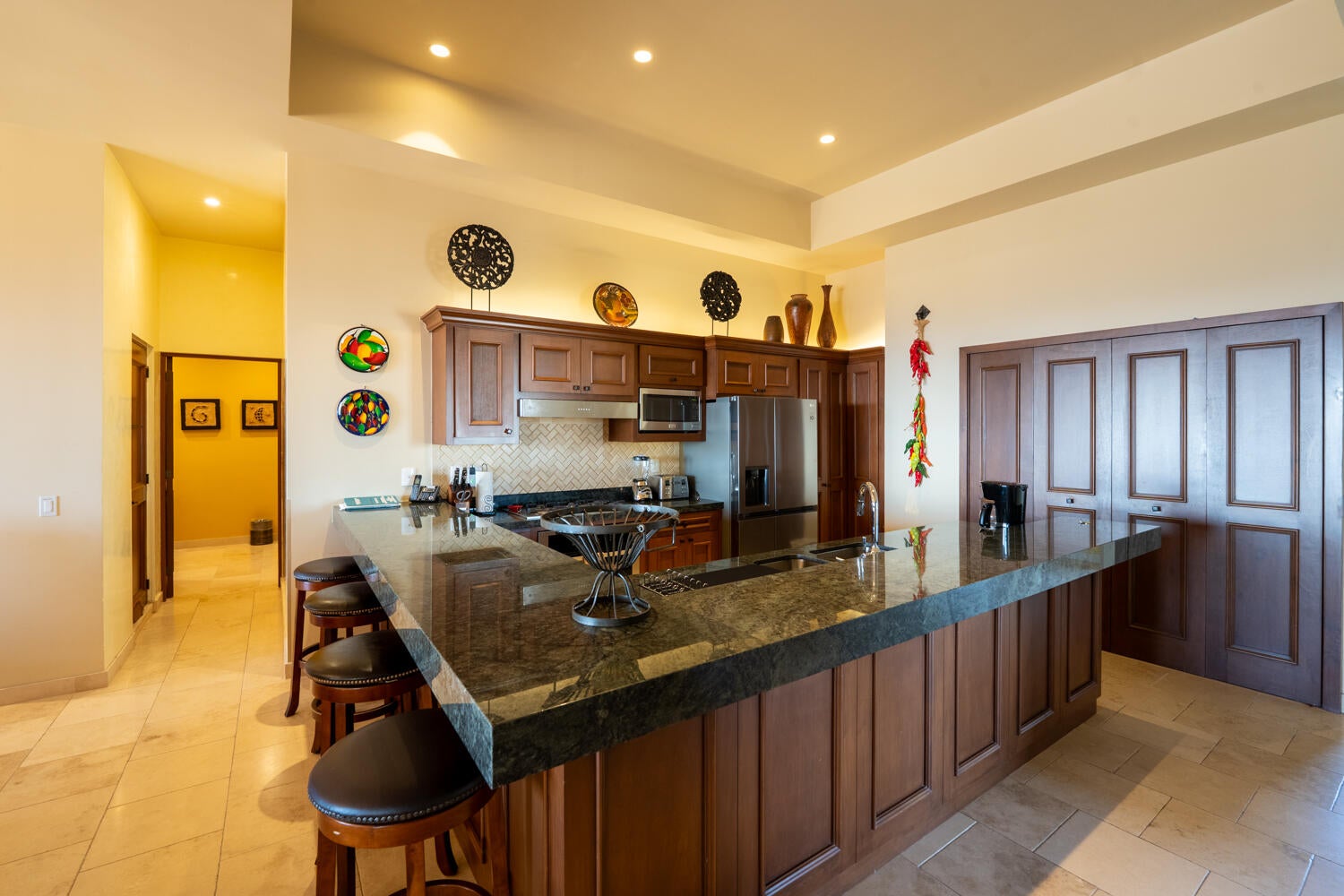 Discover a rare double penthouse in Tower 2, Phase I of Copala at Quivira. A unique residence created by combining two penthouses into a spacious home. The property features a private rooftop terrace with expansive Pacific Ocean views, offering an exceptional outdoor area for relaxing, entertaining, or simply taking in the surrounding landscape and can be accessed from inside. Four pergola parking spaces give plenty of room for Baja toys and vehicles.