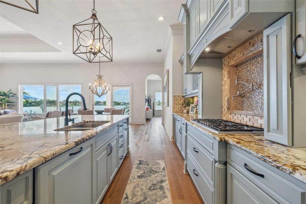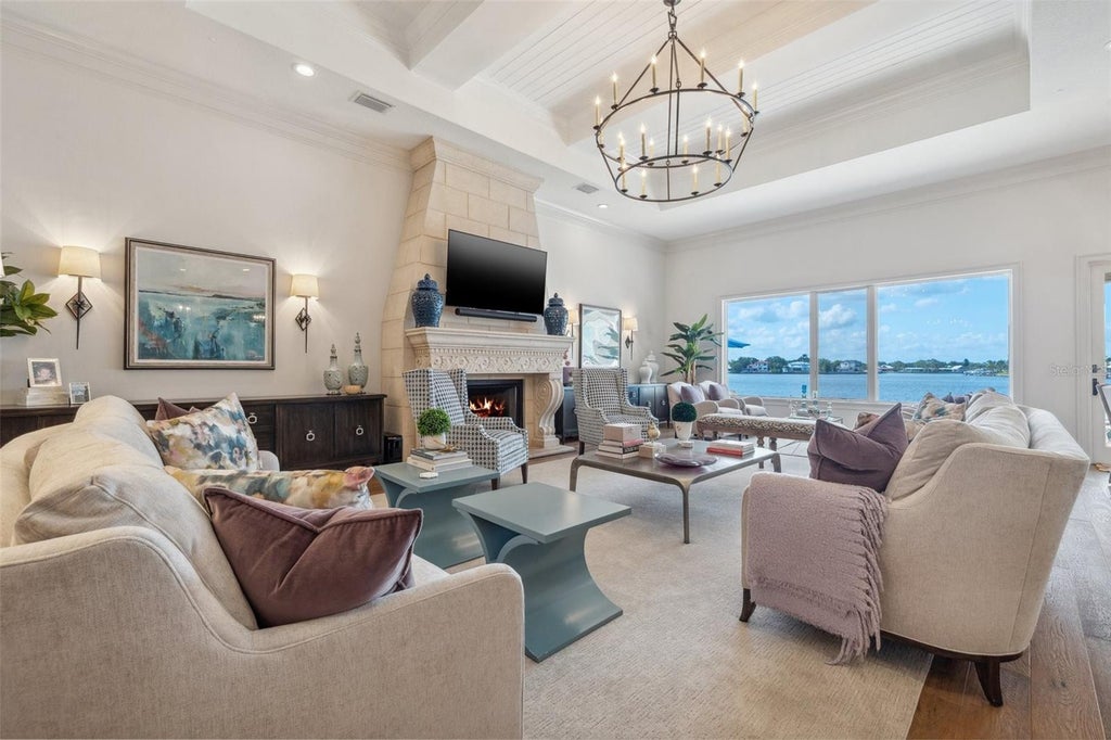 Experience coastal elegance and luxury living at its finest at 301 Bayview Drive NE, nestled on the shores of Smacks Bayou in the exclusive Snell Isle neighborhood of St. Petersburg. Elevation is 9.8 and sustained NO WATER INTRUSION in recent storms. Built by Andrew Vecchio in 2015, this exceptional waterfront residence offers superior craftsmanship, timeless finishes, and a flexible floor plan designed for modern Florida living. Enjoy sweeping water views the moment you step inside. Soaring 10–12 ft ceilings throughout the home create an airy, open atmosphere, enhanced by gorgeous engineered hardwood flooring, custom designer lighting, and upscale finishes. The main living space is anchored by a stunning gas fireplace and filled with natural light from oversized windows and glass doors. The chef’s kitchen is a showstopper—featuring top-of-the-line Thermador appliances, a gas cooktop, pot filler, wine refrigerator, pantry, stone countertops, and an oversized island with bar seating—perfect for gathering and entertaining. Enjoy your private waterfront oasis with a heated saltwater pool, spa, covered lanai, outdoor kitchen, and private dock. Whether you’re hosting sunset dinners or launching paddleboards from your backyard, this home was built for the Florida lifestyle. The private primary suite is a serene retreat offering panoramic water views, dual walk-in closets, and a spa-inspired en suite bath with dual vanities, a freestanding Jacuzzi soaking tub, and a glass-enclosed walk-in shower. Each guest bedroom includes its own en suite bath, providing comfort and privacy for family and guests. A unique highlight of this home is the separate casita/in-law suite—attached yet completely private with its own entrance, walk-in closet, and full bath. It’s ideal for multi-generational living, a dedicated home office, home gym, or studio. Additional features include a spacious laundry room, 3-car garage with high ceilings for extra storage or lift installation, and a circular brick driveway that enhances curb appeal. Located minutes from vibrant downtown St. Pete, yet tucked away in a peaceful enclave, 301 Bayview Drive offers the best of both worlds—quiet luxury living with world-class dining, culture, and shopping just moments away.