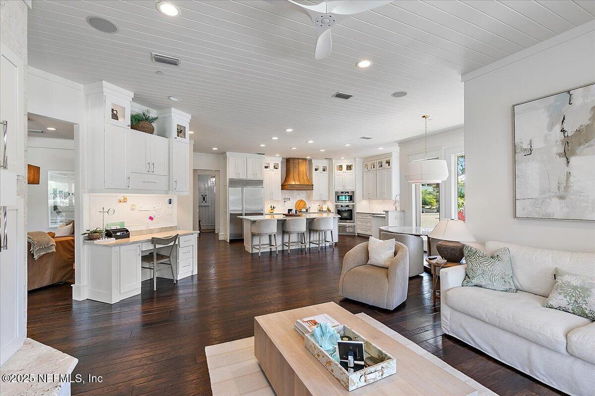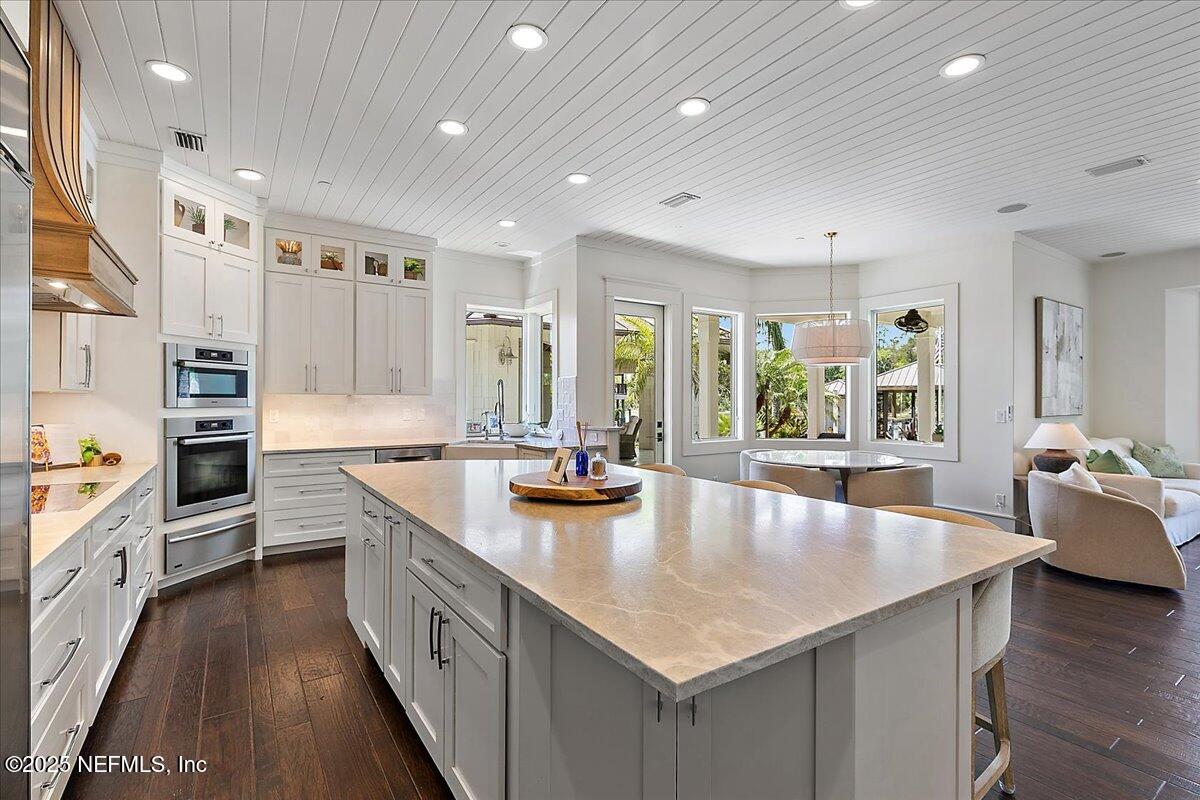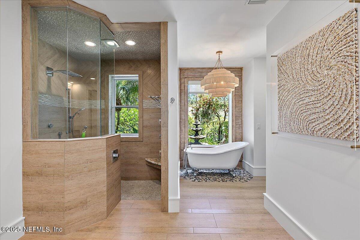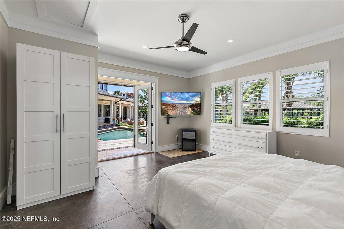 Priced below 10/25 appraisal. Located on 192 feet of prime Intracoastal waterway, Seven Palms Estate is located on an expansive 2-acre lot offering a rare blend of luxury, privacy, and adventure. The property features a 5,760 sq. ft. main residence with five bedrooms, a private office, and thoughtfully designed living spaces that marry timeless elegance with modern luxury. A separate 432 sq. ft. guest house with a tranquil garden shower provides a private retreat for visitors, while the newly built summer kitchen and cabana enhance the outdoor entertaining experience. The luxurious pool and spa complete the resort-like atmosphere. Car and fitness enthusiasts will appreciate the 3,166 sqft. heated and cooled garage, gym, and flexible space. Waterfront amenities abound, including a 40′ x 35′ dock and boathouse with a 13,000 lb boat lift and a 6,000 lb lift, running water, electricity, concrete bulkhead, and a private boat ramp—ideal for effortless coastal living. Originally constructed in 2004, the main home was renovated in 2012 and again in 2023-2025, blending classic architectural elements with contemporary upgrades throughout. From the elegant living room to the gourmet chef’s kitchen, every space has been crafted for both intimate gatherings and grand-scale entertaining. This extraordinary estate offers a lifestyle where refined living meets the natural beauty of the waterfront,a truly rare and unmatched experience.