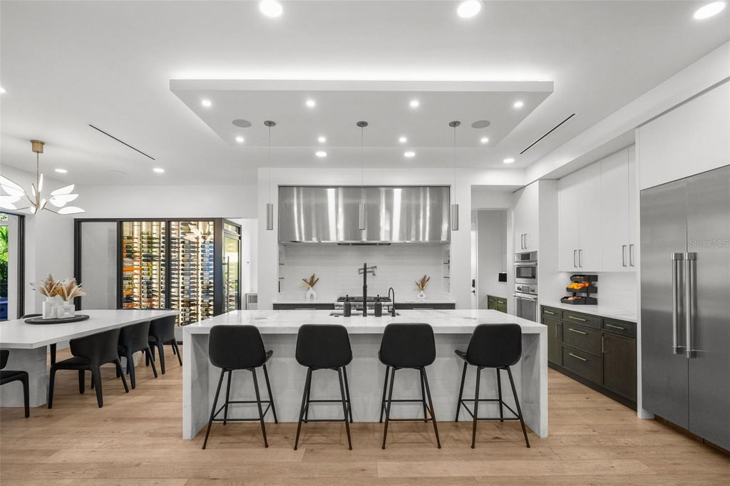 This stunning, custom-built residence, completed in 2021, embodies modern luxury and Florida living at its finest. Nestled on a generous lot in the highly sought-after Sunset Park community, this home offers 6 spacious bedrooms, plus an office, 6 full baths, and a convenient half bath. Step inside to discover over 5,600 square feet of meticulously designed living space. The open layout features high-end finishes throughout, with a central kitchen designed by Allikriste Custom Cabinetry. It boasts top-of-the-line Thermador appliances, an elevator, a 450-bottle wine cellar, and seamlessly connects to the main living area, complete with a cozy fireplace. Entertainment is a breeze with your own movie theater, a gym featuring a sauna, and an outdoor oasis. The pool and spa area, complemented by a fully equipped outdoor kitchen, create the perfect setting for gatherings. Upstairs, every bedroom is outfitted with custom California closets, while the spacious master suite offers a tranquil retreat with its own fireplace. The oversized 3-car garage provides ample space for vehicles and storage. This home has been massively upgraded since being built with notable upgrades including the following: high quality K9 XeriGrassturf through backyard, extended lanai with extreme view “invisible” unobstructed screened in lanai with dog door, custom built outdoor kitchen complete with Ooni pizza oven, teppanyaki grill and 5 burner BBQ, whole house powered 24w Generac Generator, 2 double overhead garage storage racks, 450 bottle wine cellar, full home alarm system with high quality security cameras inside and out, reverse osmosis system and built in water chiller/filter in kitchen, custom built mudroom and sports storage display cabinets, 8 mounted TVs, and hidden vault/closet in garage with finger print key for security. This home is also equipped with a state of the art comprehensive Savant System with complete integration throughout the home. Every room in the home features at least one custom Savant smart panel that allows control over the scenes, lighting, blinds, music and TVs. The house is also equipped with a 5GB fiber connection with automatic failover to a Starlink system which is mounted on the roof for uninterrupted internet access, even during hurricanes! The home comprises of 3 separate HVAC systems and a smart irrigation system which is also 3 zoned. This system is one of the most extensive Savant systems in the country, second only to one other in the US and offers unparalleled security, peace of mind, and convenience. This home is centrally located in the heart of South Tampa and within A rated school districts. You will be just minutes from the Westshore Business District and Tampa International Airport and a short drive to Downtown Tampa, bustling Water Street/Channelside and the upscale shopping district of Hyde Park Village. While in a flood zone, this home did not take on any flooding during the recent hurricanes and is fitted with Storefront impact windows and a whole house generator, perfect for safety and peace of mind during Florida’s hurricane season!