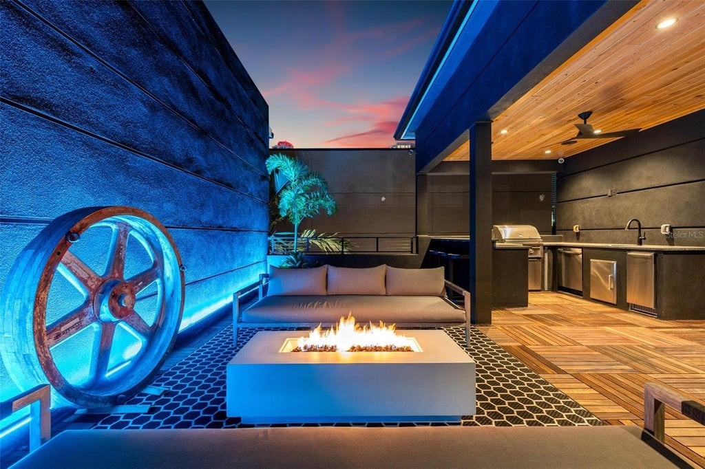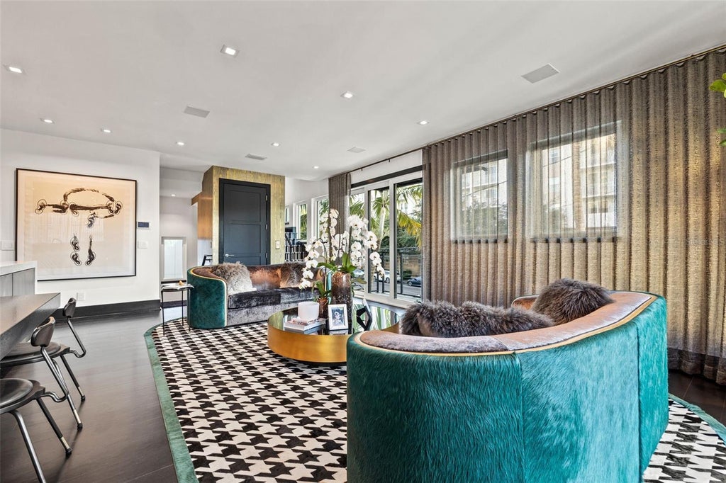 A One-of-a-Kind Architectural Masterpiece in the Heart of Downtown St. Petersburg. Featured in Florida Design and other prominent publications, this extraordinary custom residence is a true work of art by renowned designer Rob Bowen of Rob Bowen Design. Located on a rare single-family corner lot in vibrant downtown St. Petersburg, this 2-bedroom, 3.5 bath home spans approximately 2,900 square feet of meticulously curated living space. Every detail has been thoughtfully considered—from the ebony-stained custom oak hardwood floors to the Ann Sacks and Walker Zanger tile featured throughout the spa-like bathrooms. Both bedrooms are ensuite, offering privacy and luxury, with the primary bath featuring bespoke bronze cabinetry by T2THES. Entertain effortlessly in the stunning chef’s kitchen outfitted with Wolf and Sub-Zero appliances and more custom bronze cabinetry, all open to dramatic living spaces accented by designer lighting, Crestron automation, Dynaudio speakers throughout, and a state-of-the-art security camera system. Step outside to your private heated pool or take the elevator to the rooftop deck, where an outdoor kitchen and city views create the perfect setting for gatherings or quiet evenings under the stars. Additional highlights include a spacious 2-car garage, no HOA restrictions, and the peace of mind of being located outside the flood zone. This is not just a home—it’s a statement. A rare opportunity to own a true designer showpiece in one of Florida’s most dynamic downtown neighborhoods.