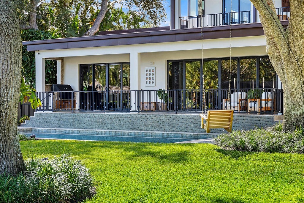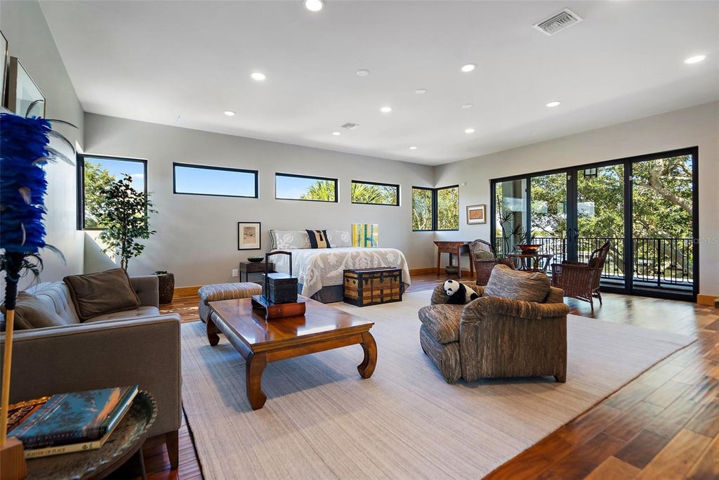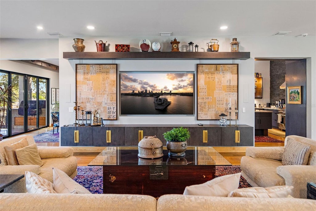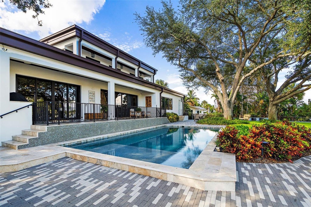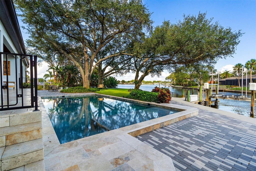 Step into serenity the moment you enter this exceptional modern residence that sets the standard for elegant living with refined features and finishes, an innovative design, and an ideal tranquil setting to live the ultimate Florida lifestyle. The home is nestled on a third-acre estate-style property with 130+/- feet of protected waterfront tucked away on a quiet street in the heart of Snell Isle, one of St. Pete’s most coveted neighborhoods. This residence is a welcomed retreat from the hustle and bustle of downtown and Snell Isle is great for enjoying birding, walking, jogging, and biking. Bask in spectacular sunrises, serene views of Smacks Bayou and enjoy watching dolphins and manatees or fishing from your dock. No detail was overlooked or expense spared in modifications and upgrades to the home and property over the past few years. This extraordinary custom-built home features a multitude of artisan designer details and an ideal floor plan with 4,722 sq. ft. of living space, five bedrooms (3 down and 2 up), four bathrooms, a first-floor primary suite, elegant living and dining areas, a sensational chef’s kitchen, outdoor entertaining areas, a sparkling pool deck, and a beautiful and large waterside backyard complete with gardens, glorious oaks, dock, lift, and direct access out to Tampa Bay. Inside, the flow of the home lends itself to comfortable, refined living that is ideal for both the family and entertaining. You will love the 36’x24’ great room that blends seamlessly into the dining room, breakfast nook, and fabulous deluxe commercial grade kitchen featuring an immense center island, dual sinks, deluxe stainless-steel appliances, custom crafted wood cabinetry, counter-to-ceiling slate backsplash, glass-faced display cabinets, tremendous counter space, artisan designed metal sliding screens, and a soaring ceiling with dramatic architectural beams. Retreat to the sumptuous first-floor primary retreat with direct access to the pool deck and an ensuite spa-like bath with a custom-designed wood plank floating countertop and large walk-in shower. Adjacent to the primary suite is a well-appointed bedroom with an ensuite bath that serves as an ideal private study or office. Your family and guests will delight in the additional first-floor bedroom with another bathroom and access to the conveniently located laundry room, as well as the two immense guest suites upstairs with their own waterfront balcony. Further features include Pella impact windows and accordion doors, a newer solar panel system, an upgraded commercial grade TPO roof, a refinished upgraded pool, high-end designer lighting and fans throughout, surround sound wiring, outdoor speakers, hand-stacked stonework, electric shades, a whole house security system, stationary and floating dock, upgraded 10,000lb boat lift, concrete seawall, refurbished balcony and lanai, tropical hard & landscaping, and a large 2-car garage with an EV charger. Enjoy peace of mind when you purchase this home because the seller conducted a whole home inspection (Aug. 2024) and completed all repairs! All of this is located mere minutes from the Vinoy Golf Club, the 4th Street N shopping corridor, and vibrant downtown St. Pete’s waterfront parks, nightlife, shopping, museums, waterside parks, restaurants, entertainment and sporting events. Snell Isle is conveniently located to I-275 for easy access to TIA, downtown Tampa, and all points south. Buyer to verify all measurements and information.