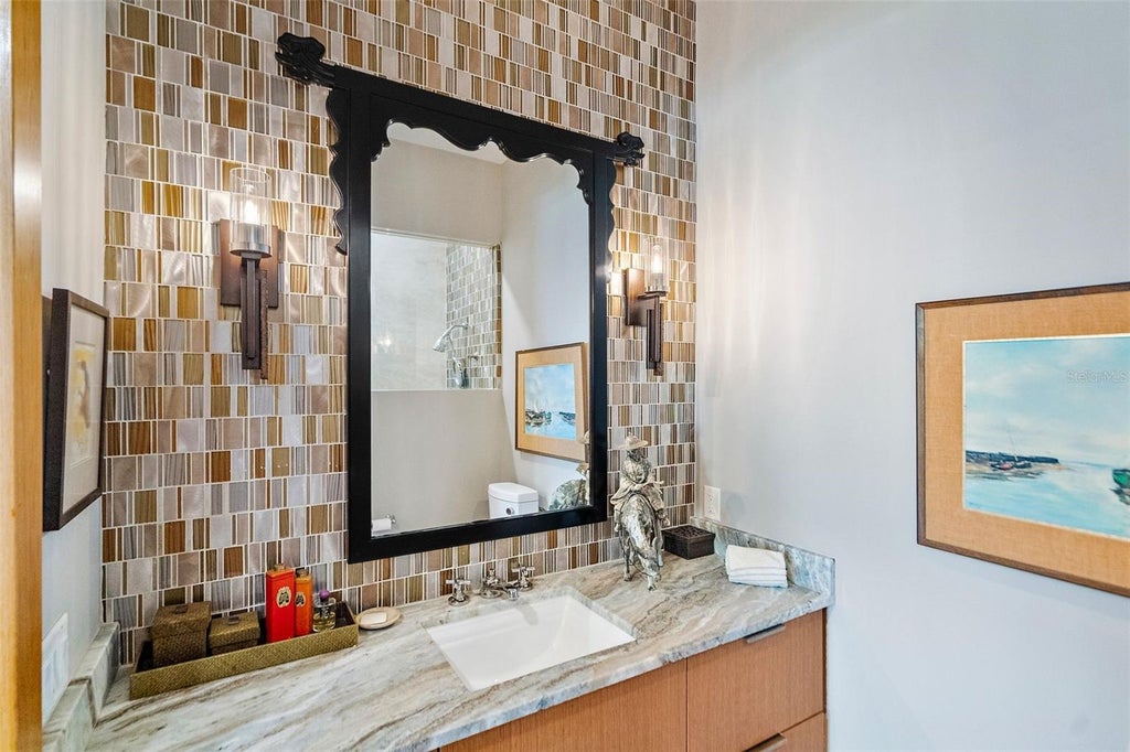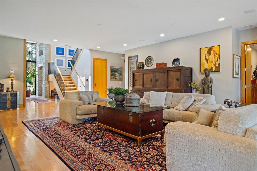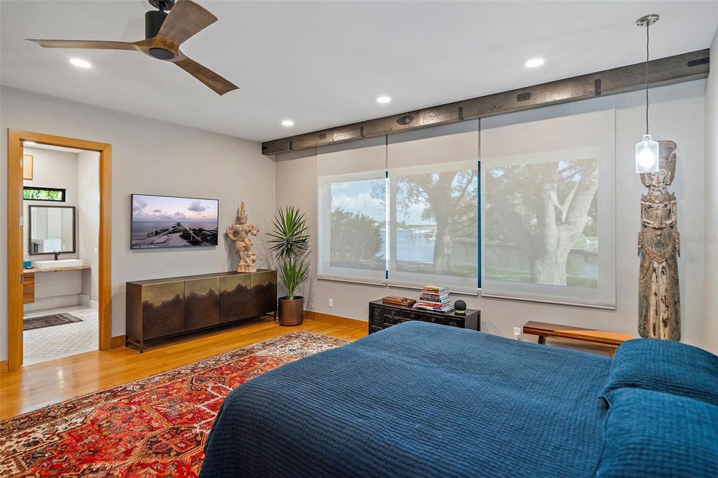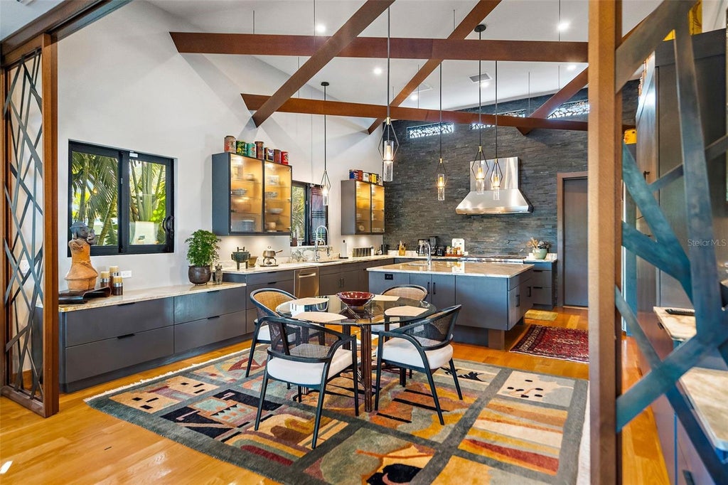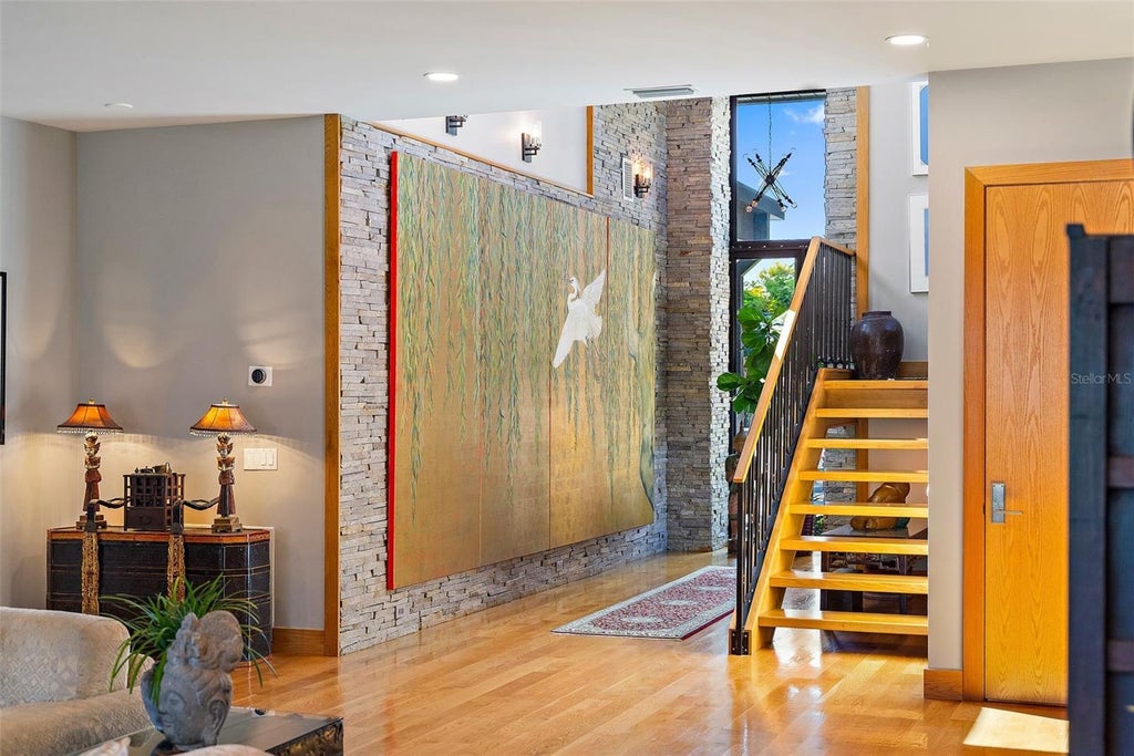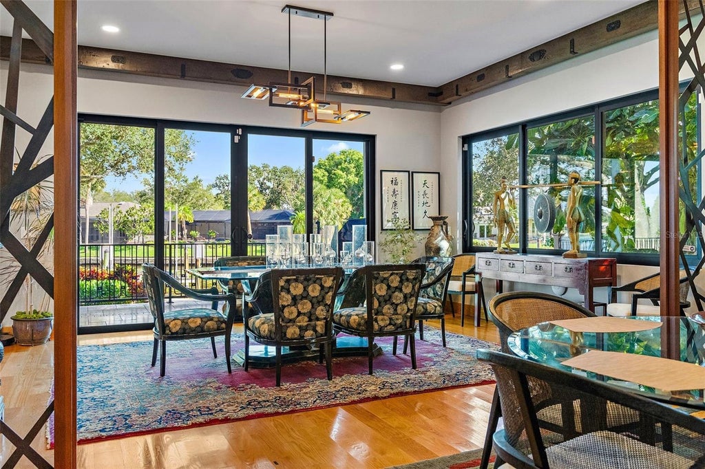 Step into serenity the moment you enter this exceptional modern residence that sets the standard for elegant living with refined features and finishes, an innovative design, and an ideal tranquil setting to live the ultimate Florida lifestyle. The home is nestled on a third-acre estate-style property with 130+/- feet of protected waterfront tucked away on a quiet street in the heart of Snell Isle, one of St. Pete’s most coveted neighborhoods. This residence is a welcomed retreat from the hustle and bustle of downtown and Snell Isle is great for enjoying birding, walking, jogging, and biking. Bask in spectacular sunrises, serene views of Smacks Bayou and enjoy watching dolphins and manatees or fishing from your dock. No detail was overlooked or expense spared in modifications and upgrades to the home and property over the past few years. This extraordinary custom-built home features a multitude of artisan designer details and an ideal floor plan with 4,722 sq. ft. of living space, five bedrooms (3 down and 2 up), four bathrooms, a first-floor primary suite, elegant living and dining areas, a sensational chef’s kitchen, outdoor entertaining areas, a sparkling pool deck, and a beautiful and large waterside backyard complete with gardens, glorious oaks, dock, lift, and direct access out to Tampa Bay. Inside, the flow of the home lends itself to comfortable, refined living that is ideal for both the family and entertaining. You will love the 36’x24’ great room that blends seamlessly into the dining room, breakfast nook, and fabulous deluxe commercial grade kitchen featuring an immense center island, dual sinks, deluxe stainless-steel appliances, custom crafted wood cabinetry, counter-to-ceiling slate backsplash, glass-faced display cabinets, tremendous counter space, artisan designed metal sliding screens, and a soaring ceiling with dramatic architectural beams. Retreat to the sumptuous first-floor primary retreat with direct access to the pool deck and an ensuite spa-like bath with a custom-designed wood plank floating countertop and large walk-in shower. Adjacent to the primary suite is a well-appointed bedroom with an ensuite bath that serves as an ideal private study or office. Your family and guests will delight in the additional first-floor bedroom with another bathroom and access to the conveniently located laundry room, as well as the two immense guest suites upstairs with their own waterfront balcony. Further features include Pella impact windows and accordion doors, a newer solar panel system, an upgraded commercial grade TPO roof, a refinished upgraded pool, high-end designer lighting and fans throughout, surround sound wiring, outdoor speakers, hand-stacked stonework, electric shades, a whole house security system, stationary and floating dock, upgraded 10,000lb boat lift, concrete seawall, refurbished balcony and lanai, tropical hard & landscaping, and a large 2-car garage with an EV charger. Enjoy peace of mind when you purchase this home because the seller conducted a whole home inspection (Aug. 2024) and completed all repairs! All of this is located mere minutes from the Vinoy Golf Club, the 4th Street N shopping corridor, and vibrant downtown St. Pete’s waterfront parks, nightlife, shopping, museums, waterside parks, restaurants, entertainment and sporting events. Snell Isle is conveniently located to I-275 for easy access to TIA, downtown Tampa, and all points south. Buyer to verify all measurements and information.