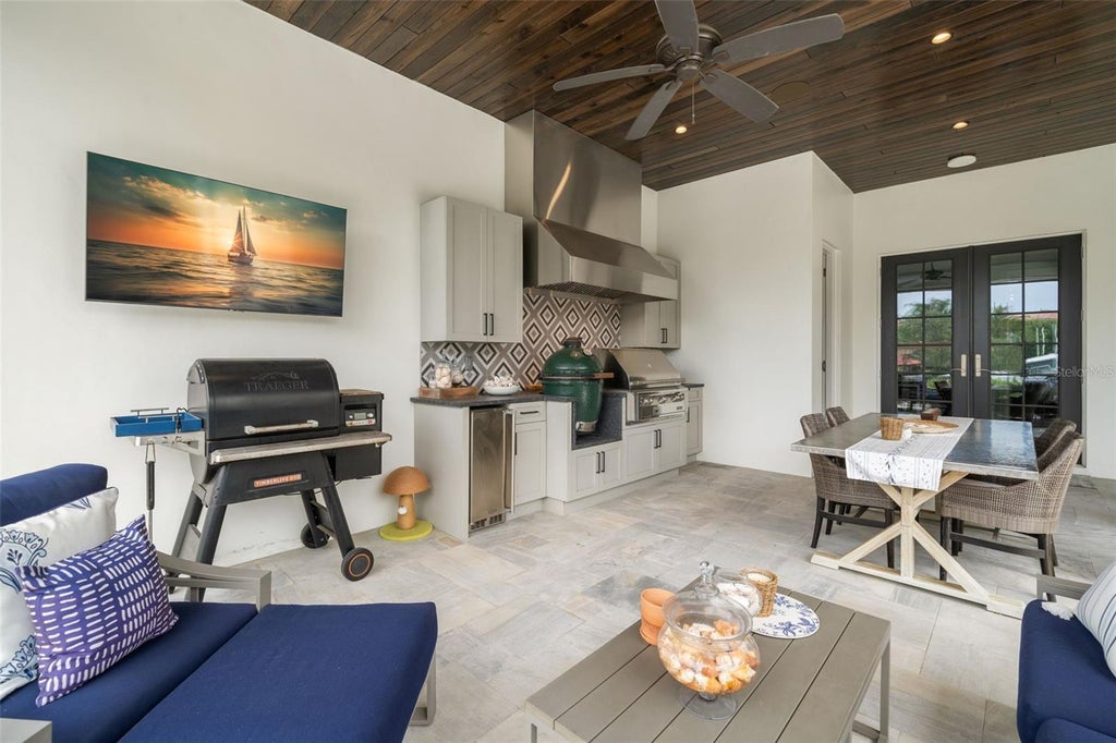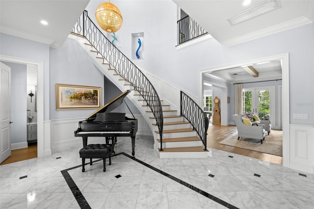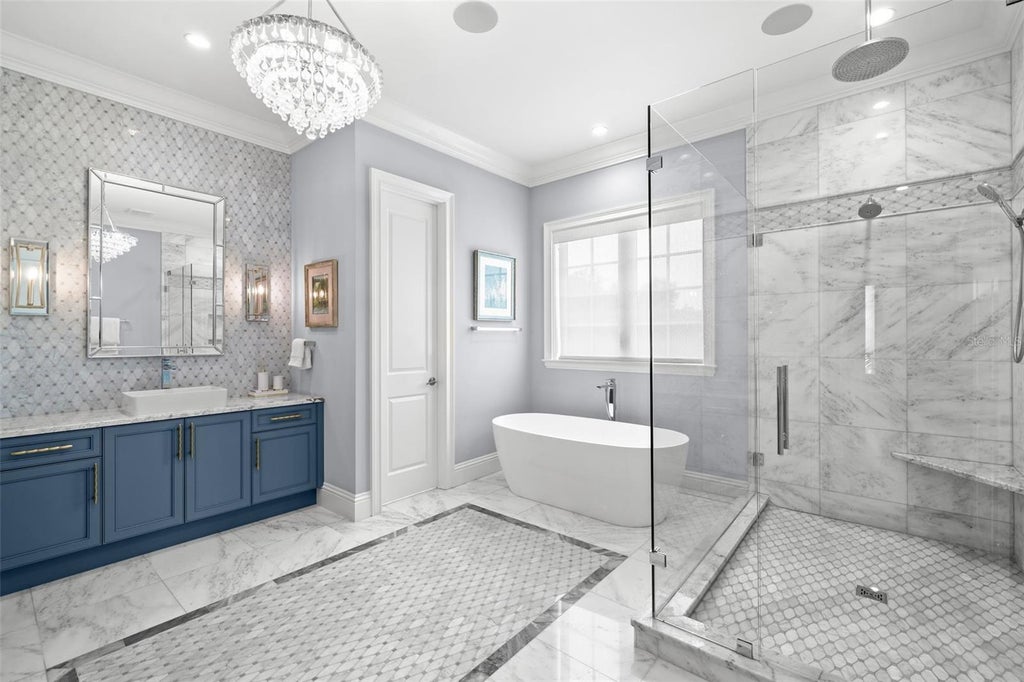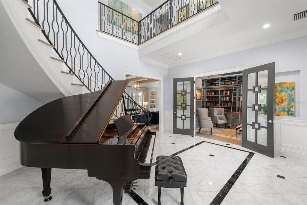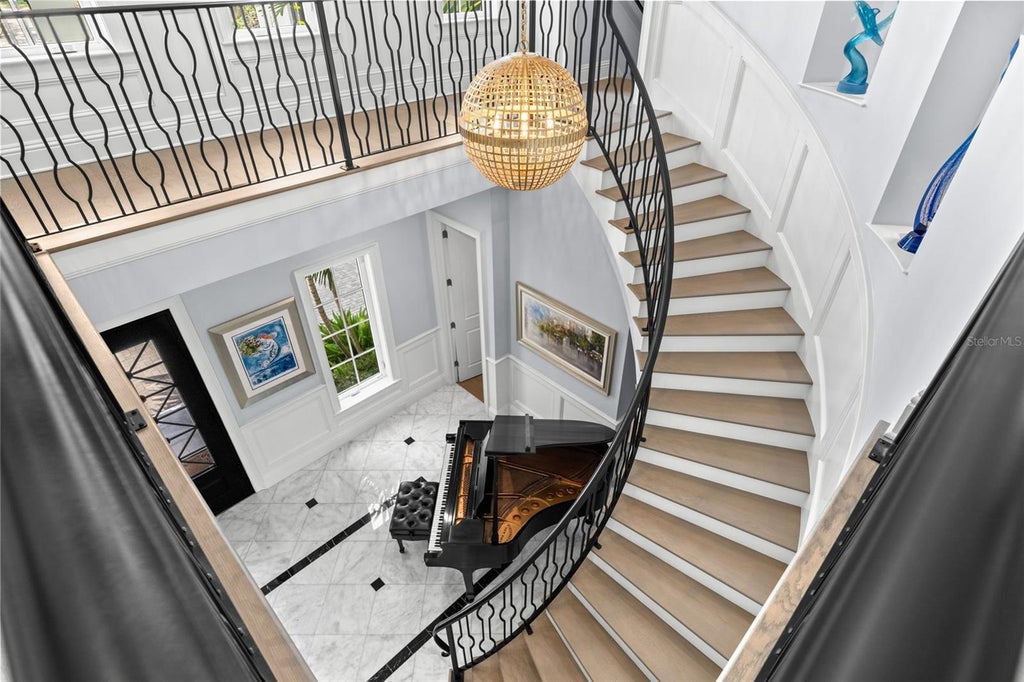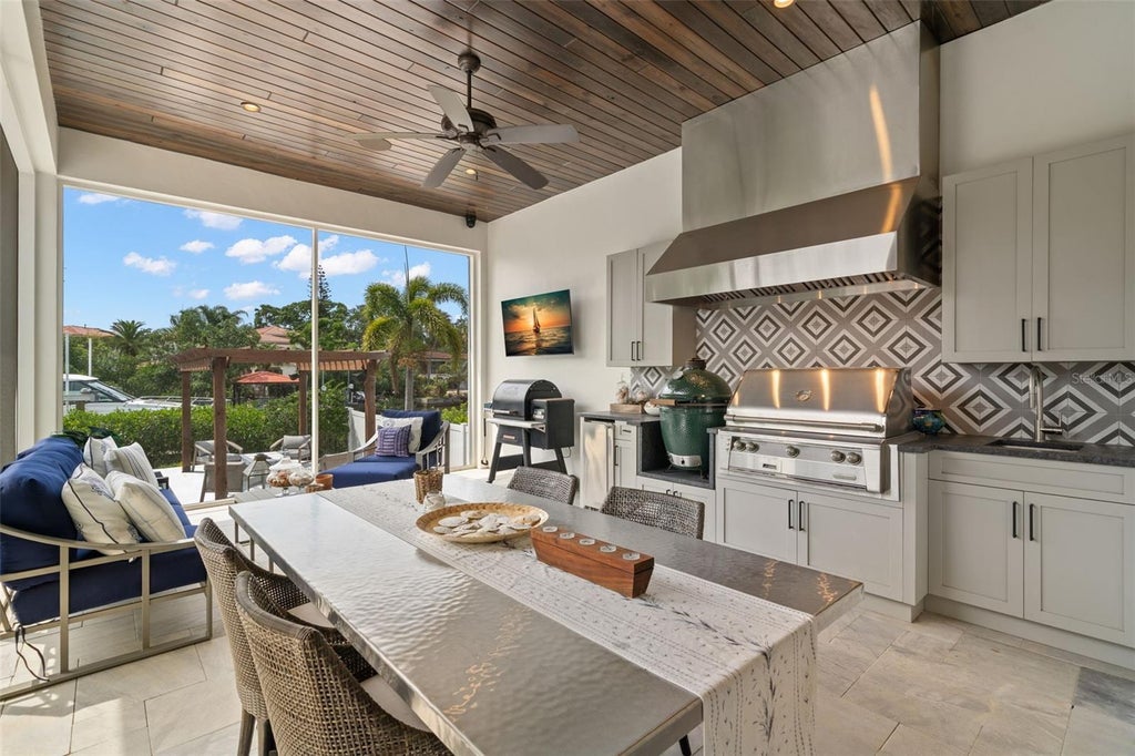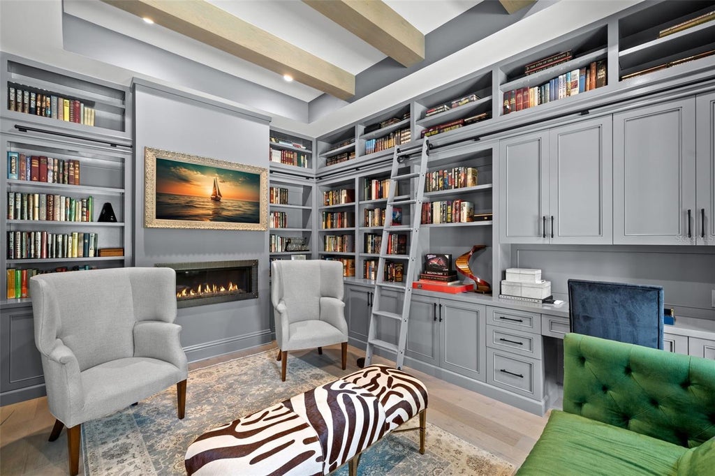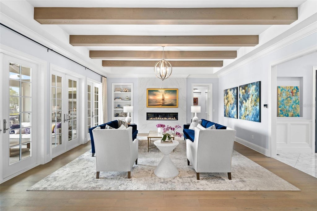 Nestled on one of the most picturesque streets in Beach Park, this custom Bayfair home—completed in 2020—offers timeless elegance, thoughtfully curated upgrades, and exceptional design. Situated on a high-and-dry lot with two-story block construction and a concrete tile roof, the home delivers both peace of mind and refined coastal living. For boating enthusiasts, the property includes a private dock constructed with durable Trex (composite) decking, featuring freshwater access and a 25,000-pound boat lift. The wide canal, dredged for 45’ boats, offers direct access to Old Tampa Bay, allowing you to enjoy the best of Tampa’s waterfront lifestyle with ease and speed. Upon entry, a marble-floored foyer welcomes you inside, opening to an intimate library with floor-to-ceiling built-in bookcases, box beam ceiling and gas fireplace. The spacious living room, lined with French doors, flows seamlessly to the covered patio, creating a natural transition to outdoor living. The formal dining room with custom built-in buffet and serene views out to the expansive backyard and water, connects directly to the heart of the home—an entertainer’s dream kitchen. The chef’s kitchen features a striking 3” quartz island with seating and professional-grade appliances, including a 48” Wolf dual fuel range with grill and griddle, double ovens, Wolf wall hood, Bosch dishwasher, Sharp microwave drawer, SubZero 30″ refrigerator and 30″ freezer, and Miele built-in coffee system. A full butler’s pantry and oversized walk-in pantry provide additional prep and storage space, along with a U-Line dual zone wine fridge. Downstairs, two bedrooms offer flexibility: one with a walk-in closet and ensuite bath featuring a walk-in shower, and the other currently serving as a light-filled art studio. Additional smart home features on the first floor include a state of the art Kohler Japanese toilet in a beautifully designed half bath, as well as Control4 automation, surround sound, integrated speakers, and automatic shades in the library, dining, and bedroom. Upstairs, the split-bedroom layout continues to impress. A spacious bonus room/game room includes a wet bar, wine fridge, walk-in closet, and dedicated AV closet. Two additional guest suites each offer private baths with marble flooring, elevated vanities, and tub/shower combinations. The owner’s retreat is a sanctuary overlooking the water, featuring two walk-in closets, marble flooring, split vanities, marble counters and backsplash, a walk-in shower, soaking tub, and a luxurious Toto Japanese toilet. The upper-level laundry room is outfitted with custom built-ins and a utility sink for convenience. Throughout the home, high-end infrastructure and hand-selected details offer ease and elegance: a whole-home generator, central vacuum system, 4-stop elevator, 3 car garage, three-zone HVAC (2020), two electric tankless water heaters, water softener, Japanese toilets, and Control4 automation. Outside, the resort-style backyard is designed for true Florida living. A covered brick-paved patio and screened lanai with a built-in outdoor kitchen, Marvel beverage unit, and grill make entertaining effortless. The generous saltwater pool and spa are complemented by a separate seating area with a gas fire pit—perfect for evening gatherings. Your Florida Oasis is Now available for private showings.