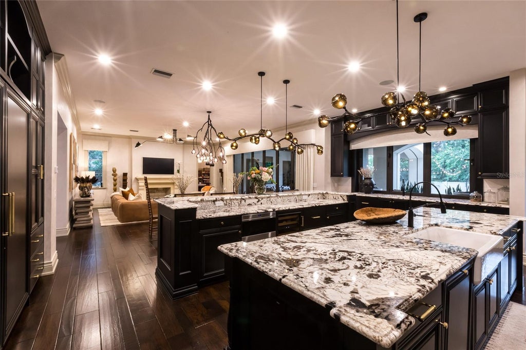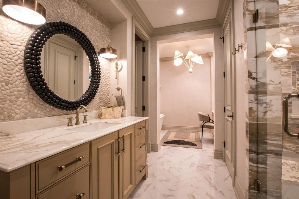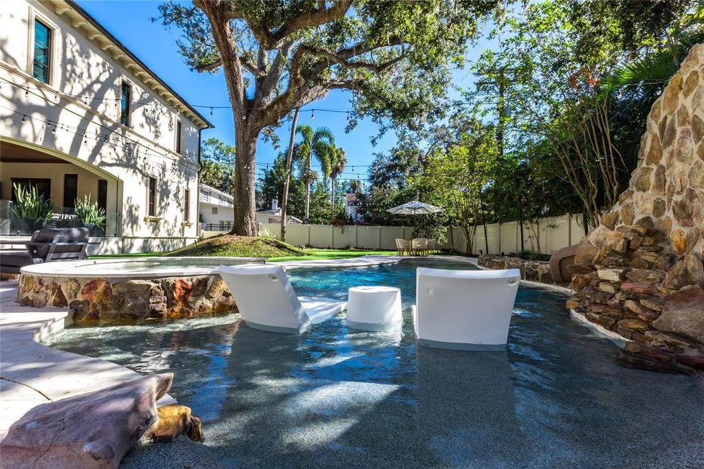Stunning South Tampa Windstar custom-built single-family home located in the desirable Beach Park neighborhood. Completed in 2018 and thoughtfully updated in 2022. This luxurious residence spans over 6,200 square feet and offers 5 bedrooms, 5 full bathrooms, and 2 half bathrooms. The gourmet kitchen is equipped with SubZero appliances, Wolf gas range, a built-in coffee center, two dishwashers, an ice machine and a spacious walk-in pantry, making it a chef’s dream. The master suite is a private retreat featuring his-and-her bathrooms and closets, a steam shower, and a cozy gas fireplace. Additional amenities include an elevator, a laundry room outfitted with two washers and dryers, along with ample storage. For car enthusiasts, the property also offers two two-car garages with three lifts, accommodating up to seven vehicles. A versatile bonus room on the third floor, complete with an attached bathroom and closet, can serve as a fifth bedroom, nanny quarters, playroom, or workout room. Outdoor living is a true highlight of this luxury property, featuring a pickleball court, a swimming pool with a slide, a putting green, a gas fire pit, and a spacious yard for recreation and relaxation. The first floor boasts a large playroom/bonus room, office and a family room that opens onto an expansive covered porch with phantom screens and a built-in summer kitchen, making it ideal for entertaining. A full-house generator adds to the home’s practicality and security. Situated on an oversized 140 x 144 lot (approximately 0.46 acres), this residence combines elegance, entertainment, and functionality, making it a standout in the sought-after Beach Park neighborhood.