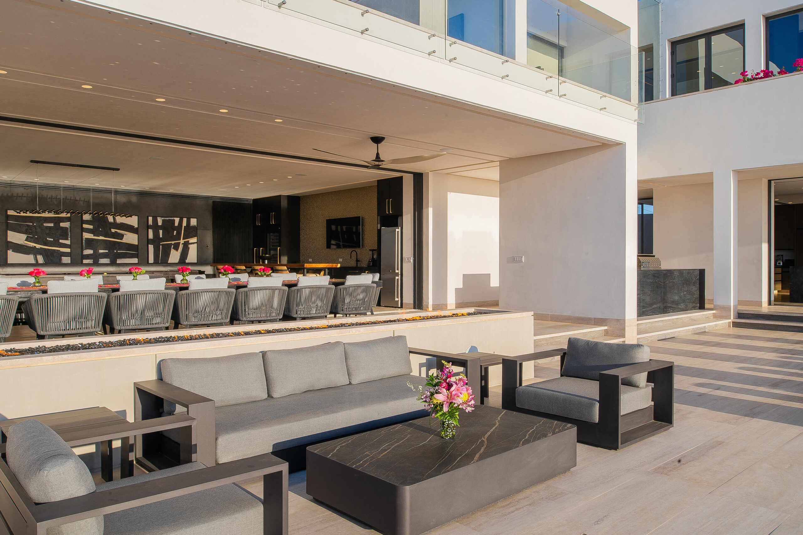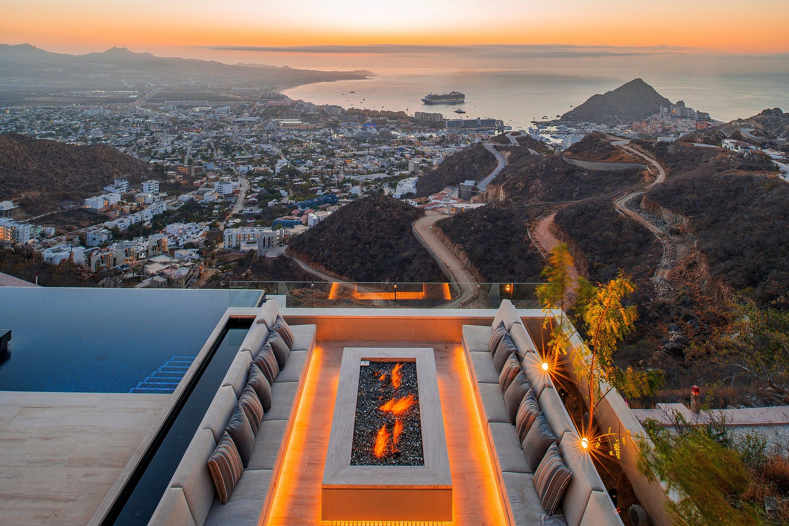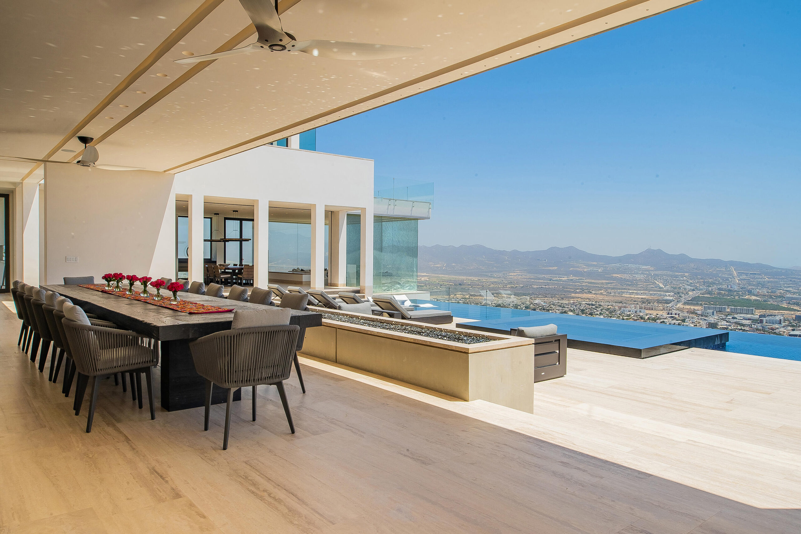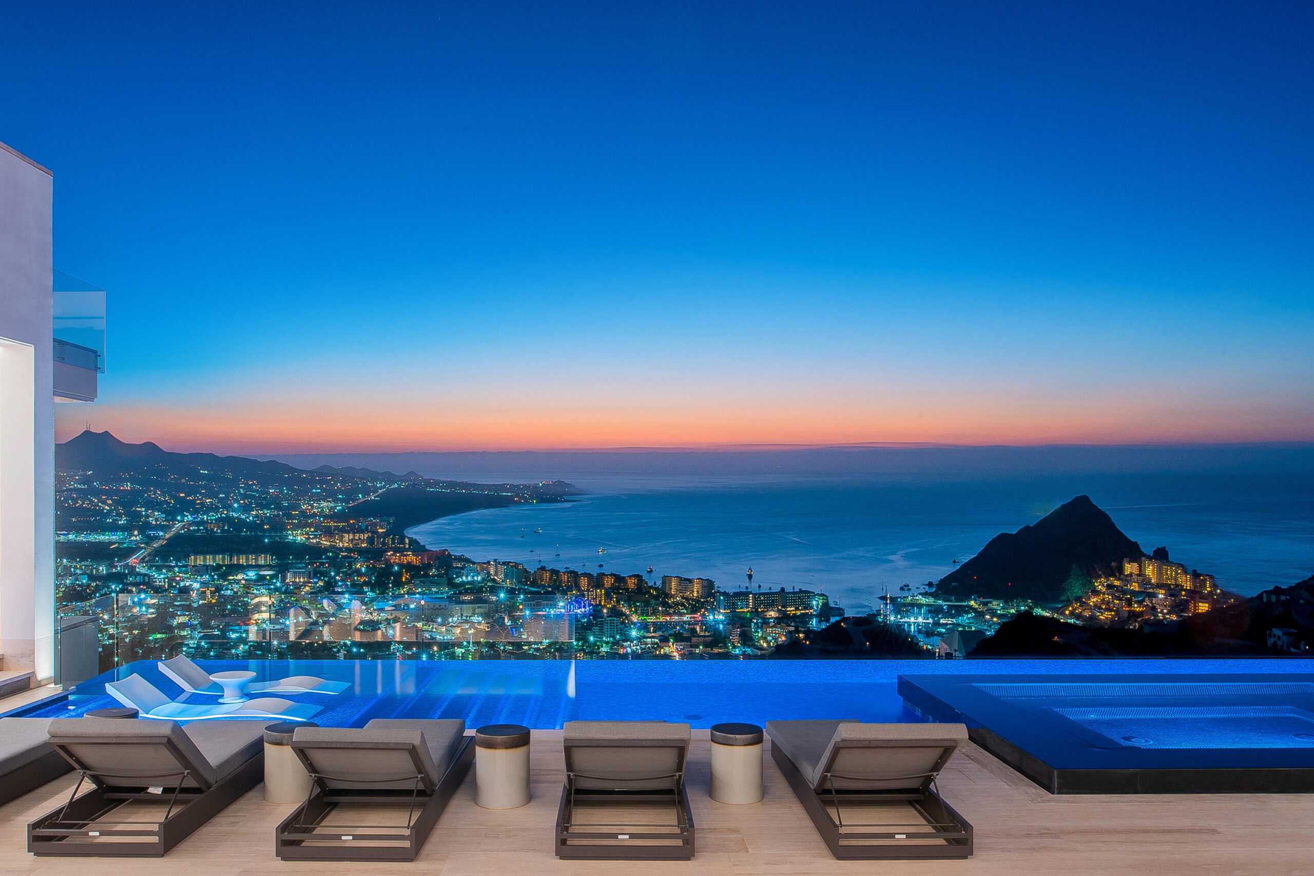 Life here is shaped as much by atmosphere as by design. Light shifts across the terraces throughout the day, and evenings settle into a quieter rhythm, marked by ocean air, distant reflections from the marina and far reaching brilliant city lights. Though Cabo San Lucas is only minutes away, the residence maintains a sense of remove, offering a setting that feels both composed and deeply connected to its surroundings.