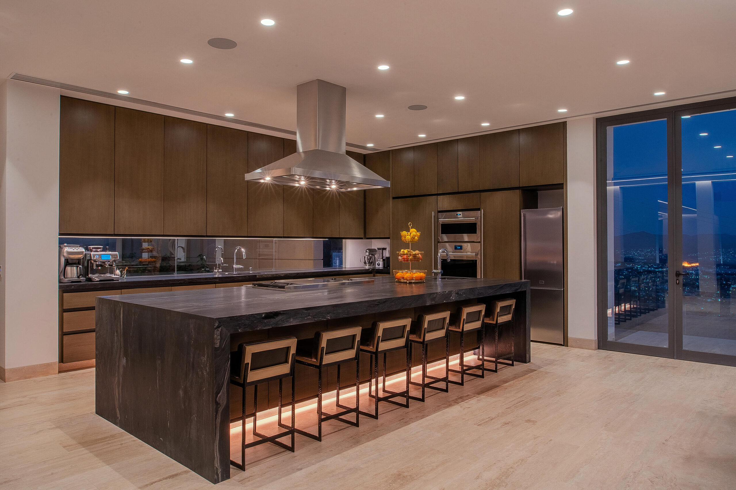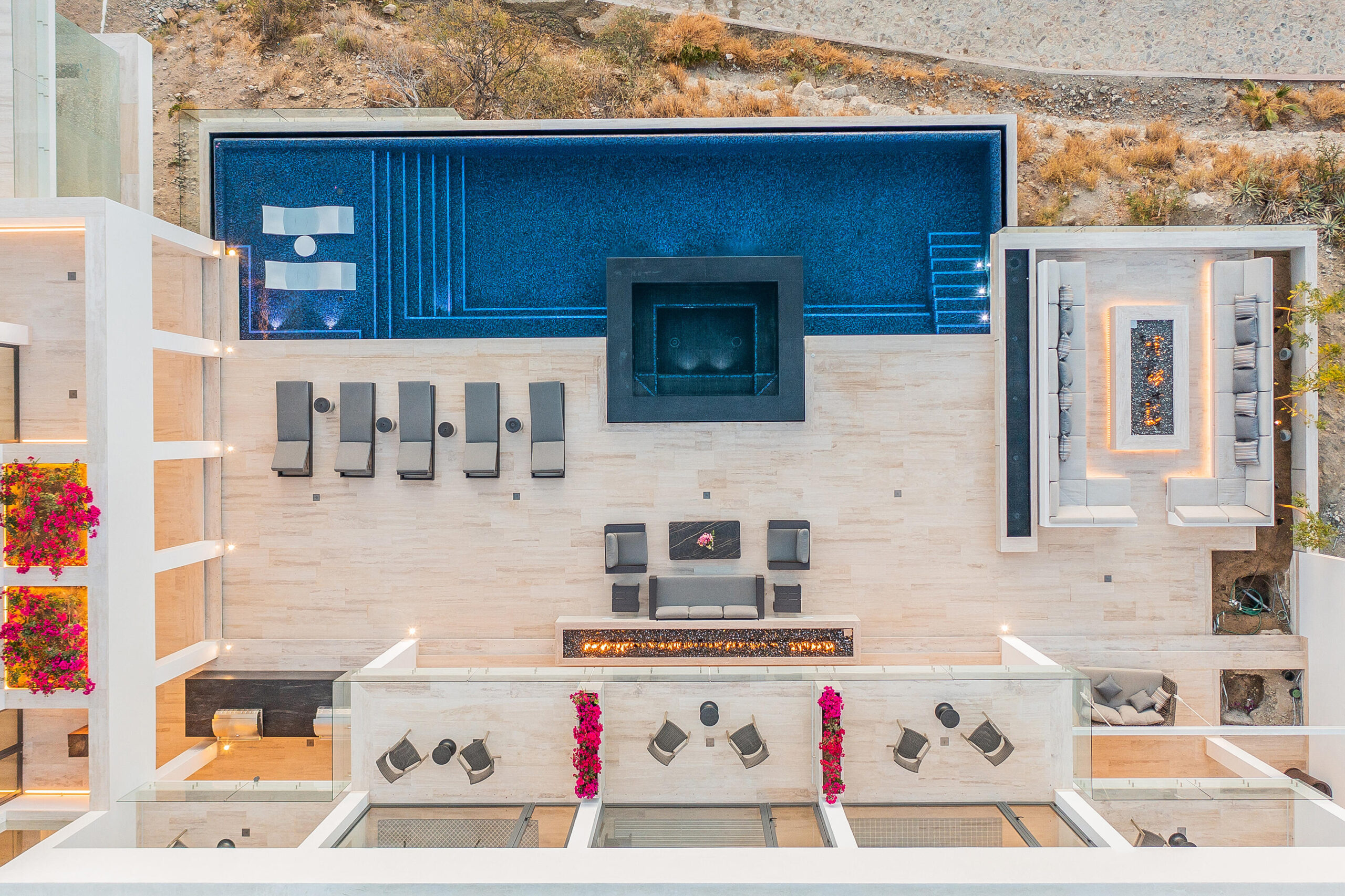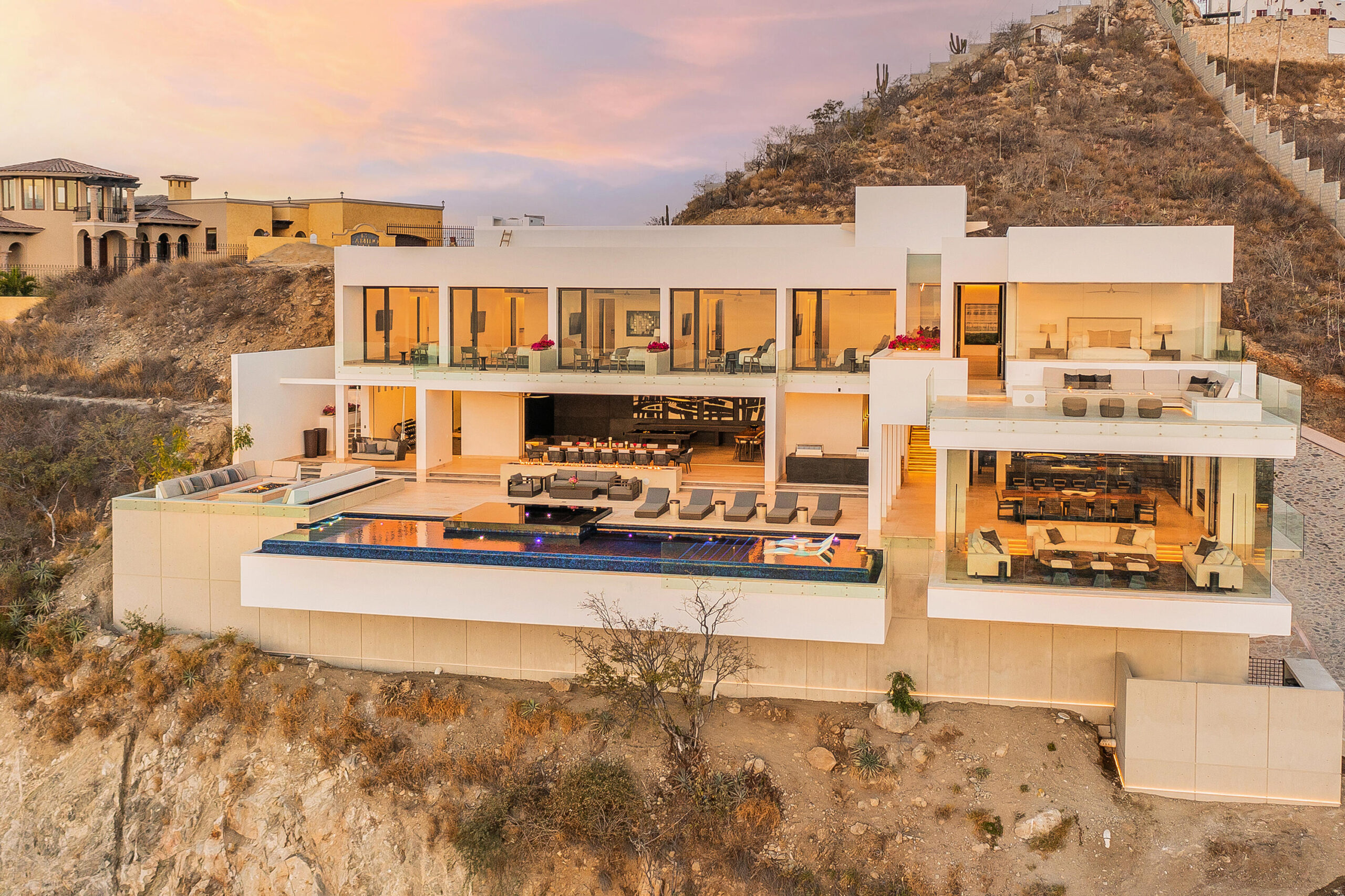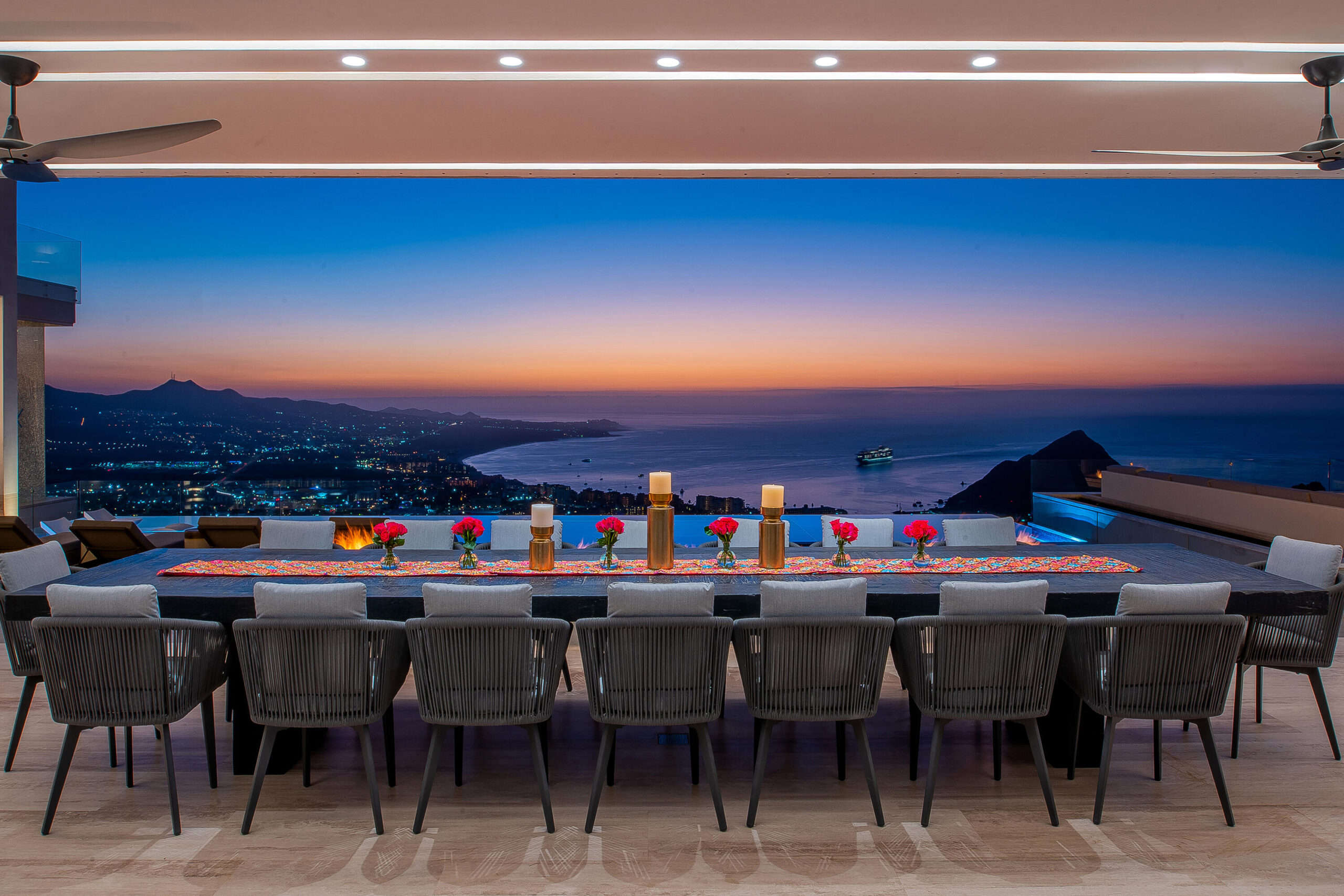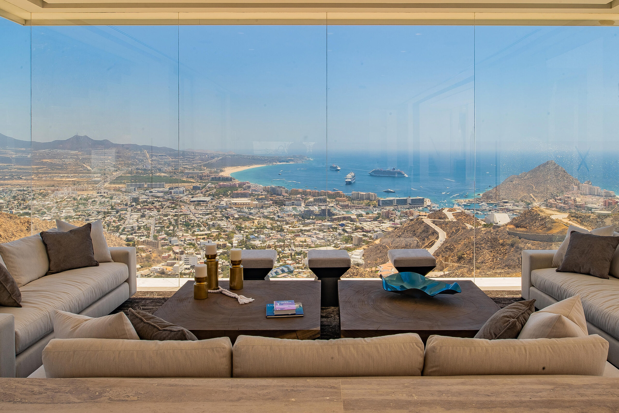Life here is shaped as much by atmosphere as by design. Light shifts across the terraces throughout the day, and evenings settle into a quieter rhythm, marked by ocean air, distant reflections from the marina and far reaching brilliant city lights. Though Cabo San Lucas is only minutes away, the residence maintains a sense of remove, offering a setting that feels both composed and deeply connected to its surroundings.