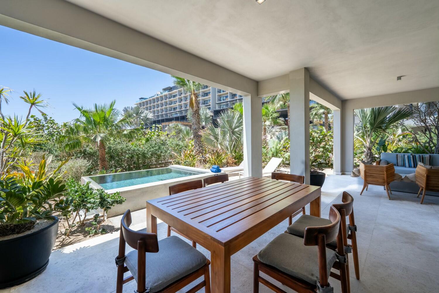 Only 2 bedroom available Cape Residence, Residence 701, is within The Cape, a Thompson Hotel, perfectly positioned in the highly sought-after Bahia San Lucas-facing building–the closest to the stunning Sea of Cortez. Just steps from the ocean. The Cape is just minutes from downtown Cabo San Lucas, where you’ll find great restaurants, shops, and entertainment. It’s also a short drive from San Jose del Cabo with its local culture and art galleries. This residence comes with a plunge pool, fully furnished and completely turnkey, allowing you to immerse yourself in a lifestyle of ease from the moment you arrive. Whether enjoying the hotel amenities, indulging in fine dining, or relaxing in your private retreat, this is a unique opportunity to embrace the lifestyle The Cape has to offer.