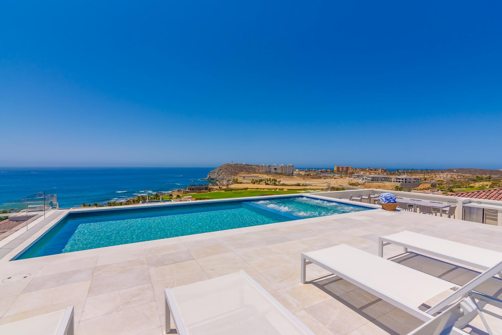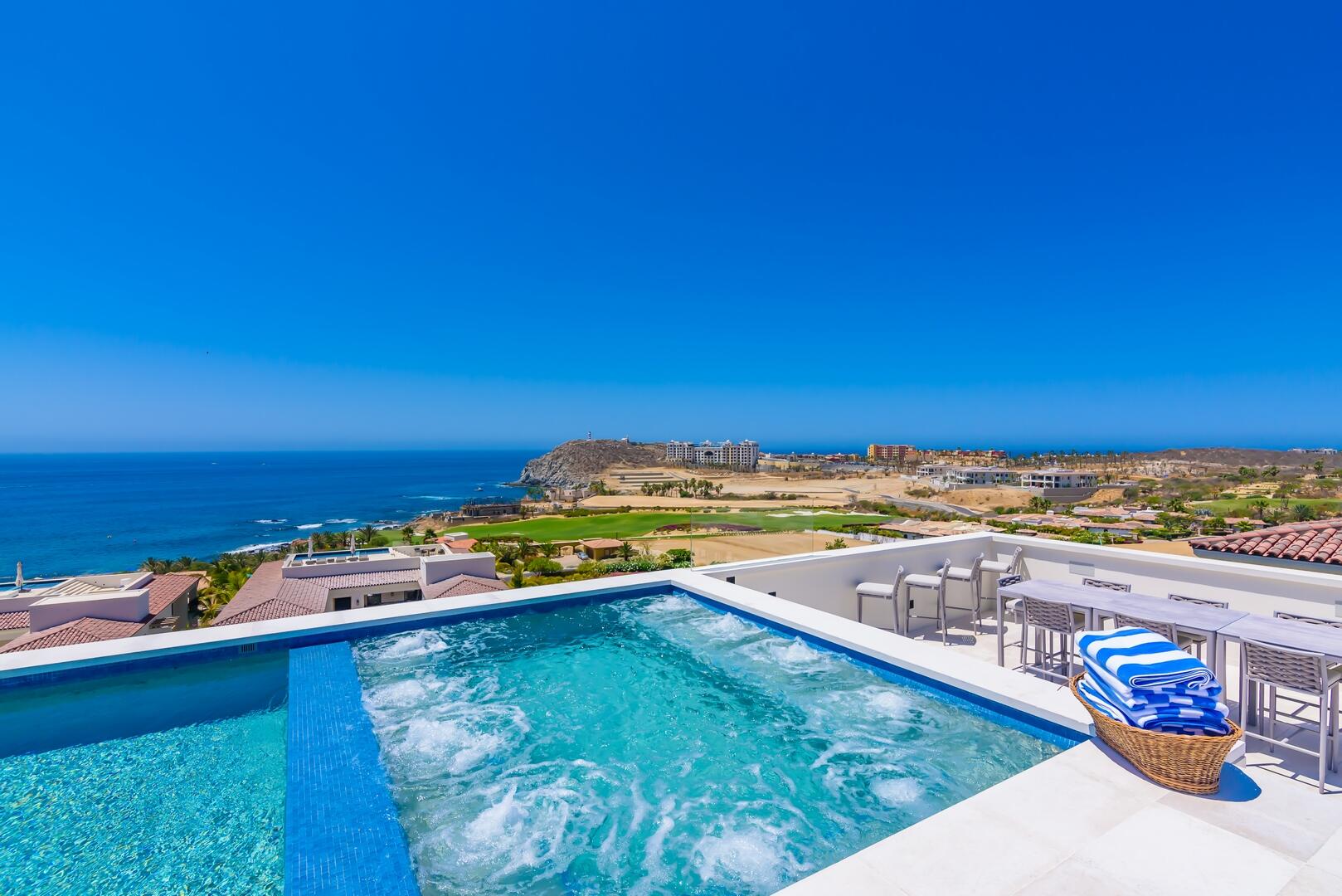Club Villa 12 is an architectural gem nestled within the prestigious Cove Club community. This luxurious property features over 3,600 sq. ft. of air-conditioned living space, including four spacious ensuite bedrooms. An expansive 1,100 sq. ft. terrace invites you to enjoy outdoor living at its finest. The private rooftop sanctuary offers a stunning infinity-edge pool and hot tub with panoramic views of the Mar de Cortez.