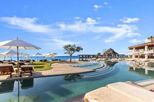 Perched elegantly within Phase III, Penthouse 3402 is currently the only 4 bedroom opportunity available at Las Ventanas al Paraíso. Enjoy an elevated position overlooking the vibrant heart of the resort while capturing enchanting panoramic Sea of Cortez views. Its setting places you just steps from premier amenities, yet wrapped in the serene privacy that defines true luxury living. Artfully appointed throughout, the residence features expansive private terraces ideal for lounging or entertaining, polished marble floors and dramatic beamed ceilings. A generous open-concept living area flows seamlessly into the fully equipped gourmet kitchen, while the serene primary suite is complemented by a spa-inspired master bath designed for restorative relaxation.