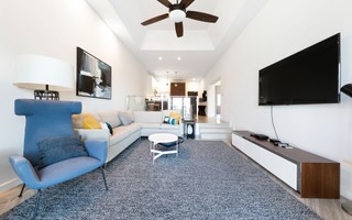 The Ocean Terraces are located within a completely gated community featuring a large, recently renovated pool, a gym, and ample parking—including covered spaces for all units. The walkways and stairs are finished with travertine tiles and enhanced with sleek, contemporary lighting.