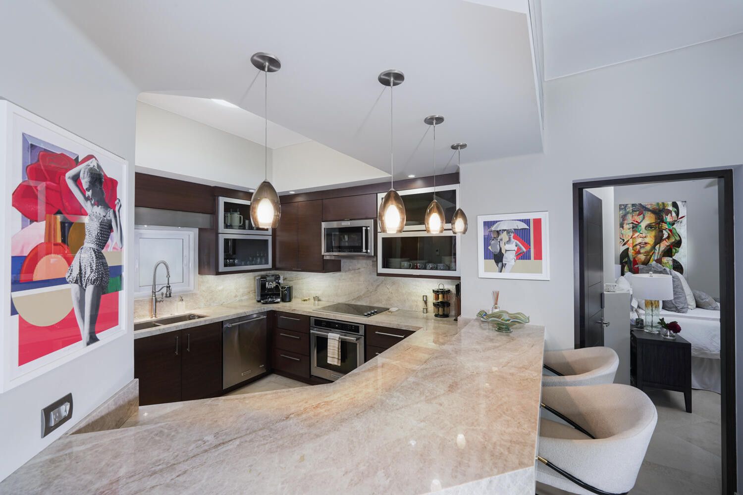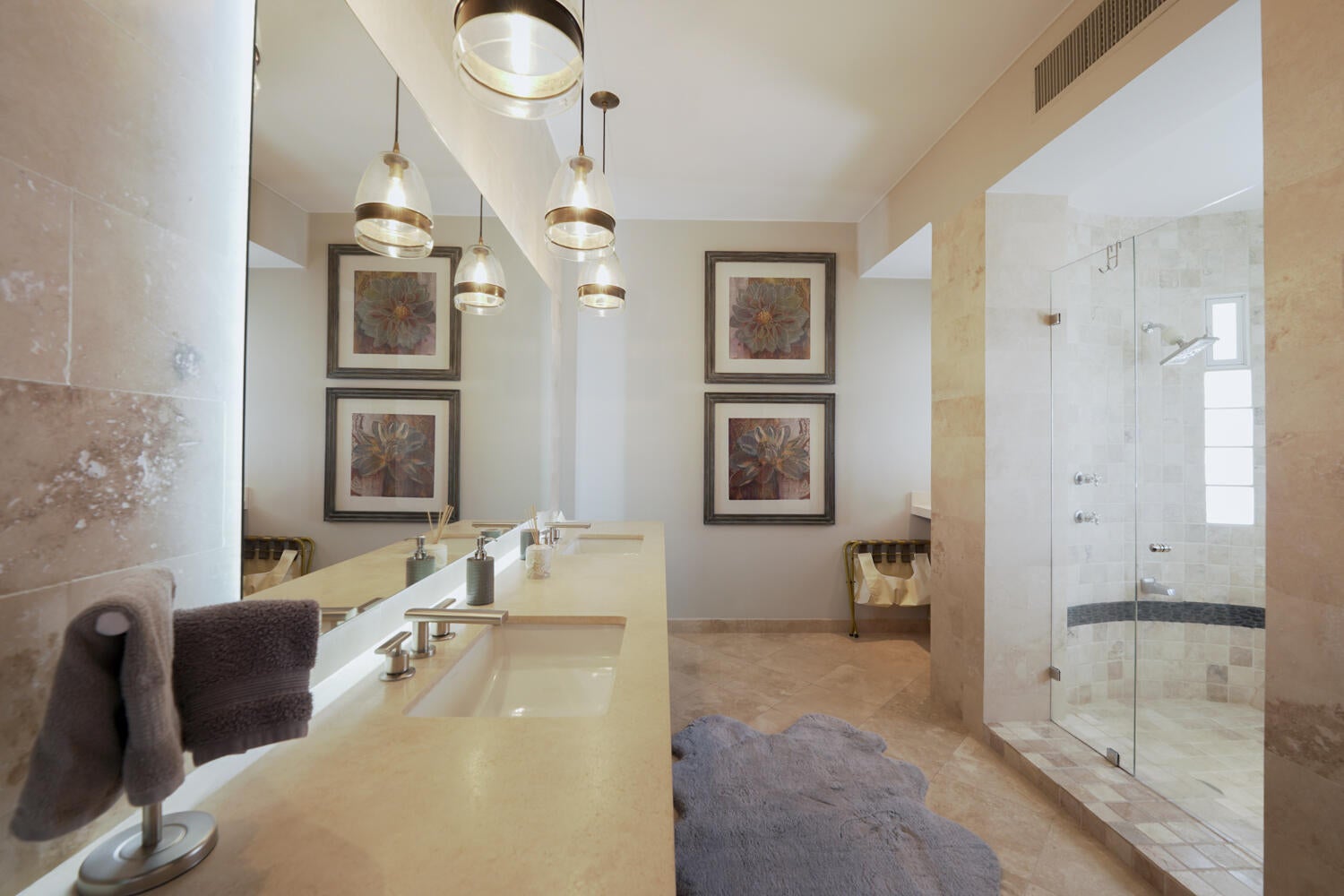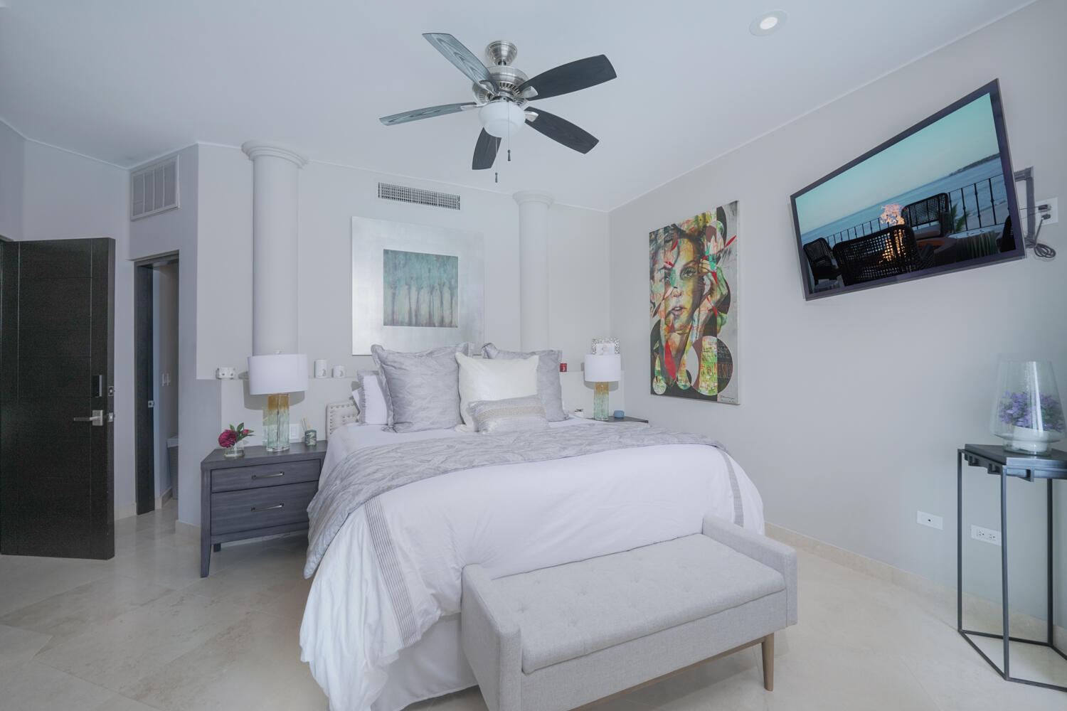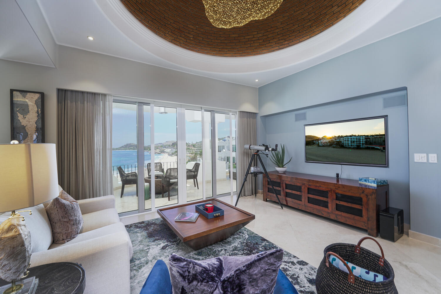 High above the shoreline of the San Jose Del Cabo Corridor, a penthouse at Mykonos frames uninterrupted westward views of the Sea of Cortez and Palmilla Point. Designed for both serenity and sophistication, the residence spans three ensuite bedrooms and four full bathrooms, one enhanced with a steam shower for a spa-like escape.