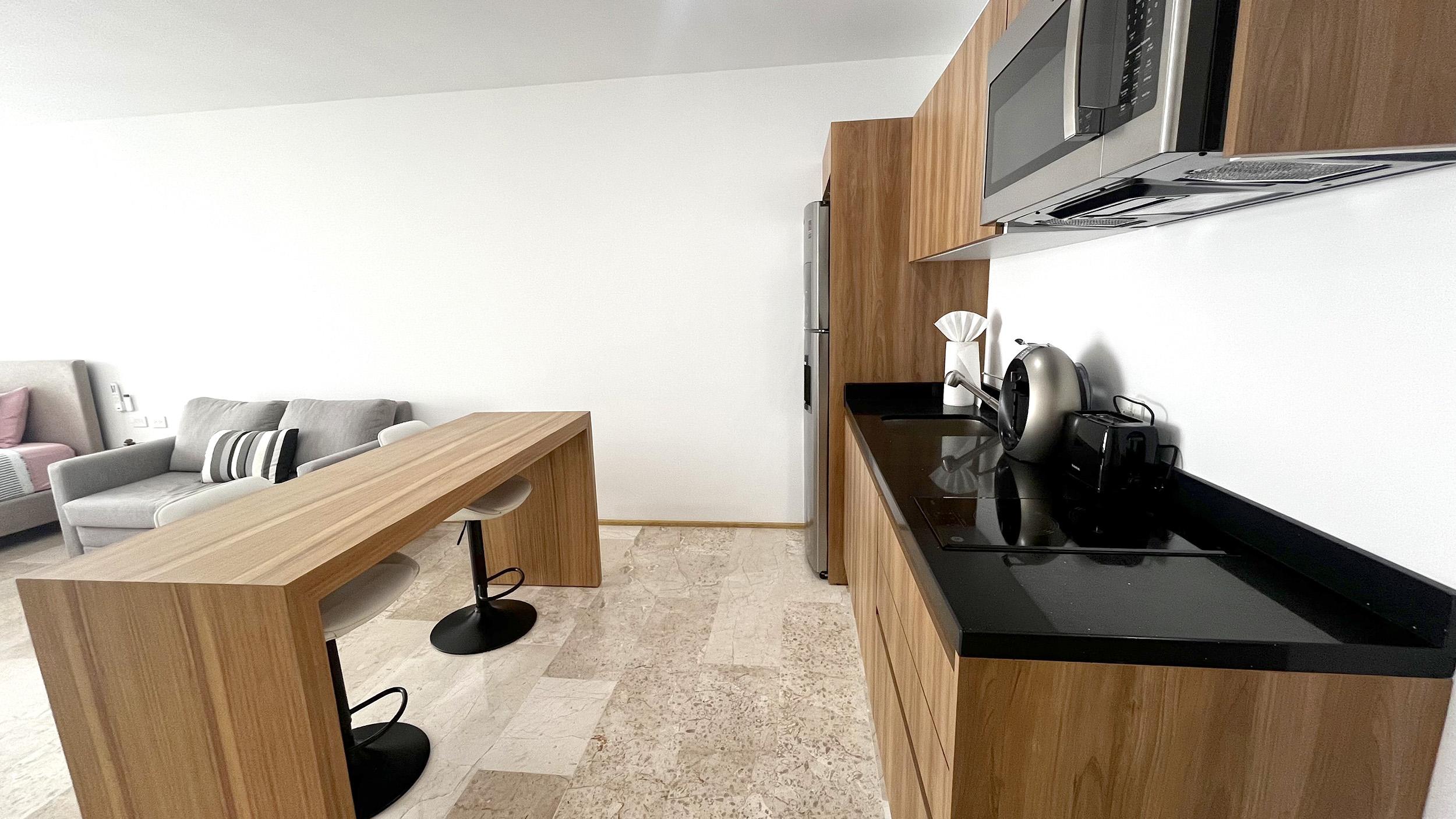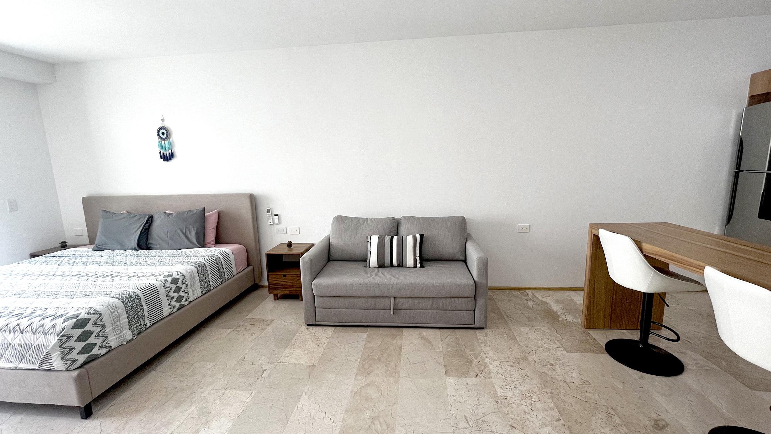 Area: 52 m² (52 sq. mts.)Bedrooms: StudioBathrooms: 1Capacity: 2 adults (with sofa bed for guests)Condition: Furnished and ready to move intoRental Model: Ideal for vacation rentals or long term rentalsFeatures: Full kitchen, breakfast bar, sofa bed, large private balcony, privileged location in quiet area 5 minutes from the beach and beach clubs. Monthly Maintenance Fee: $3092 pesos