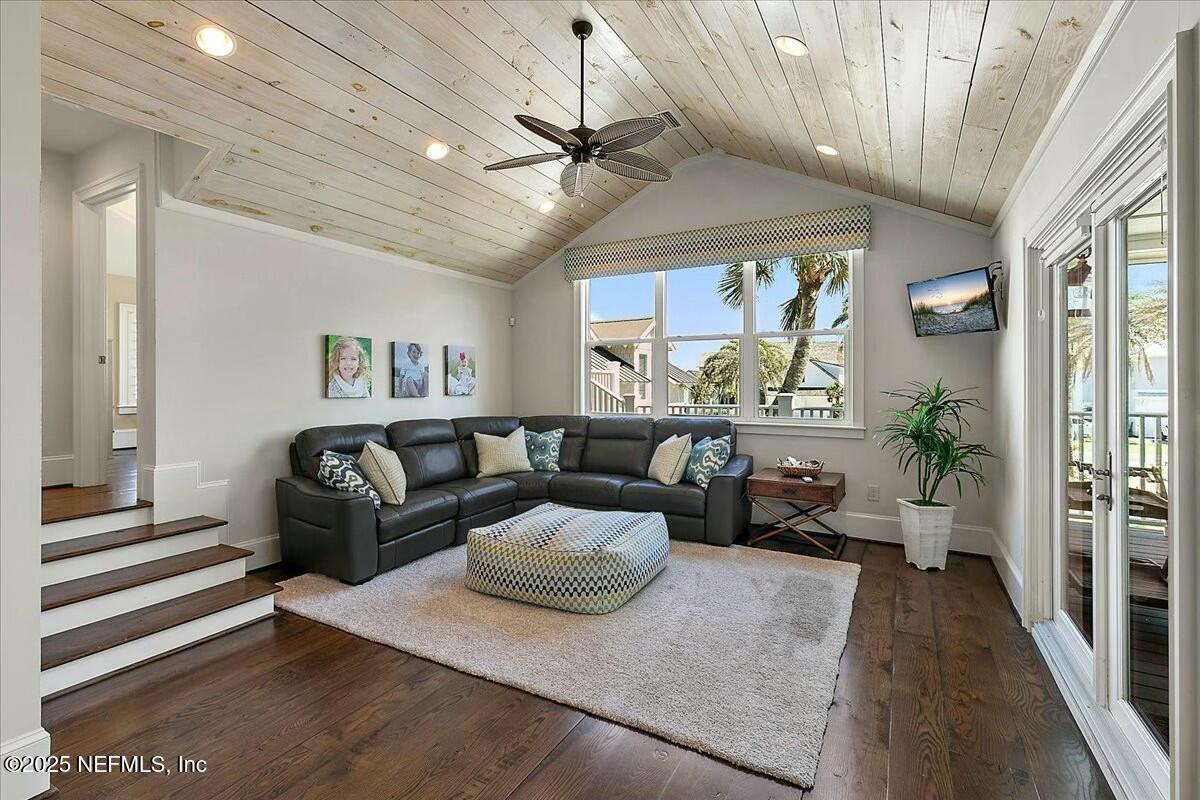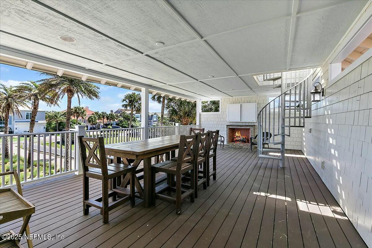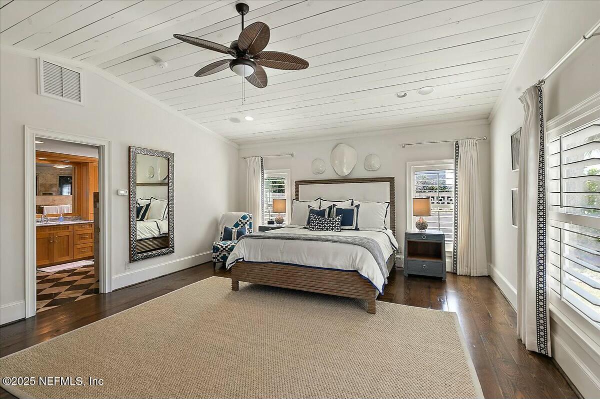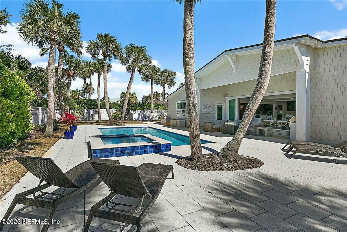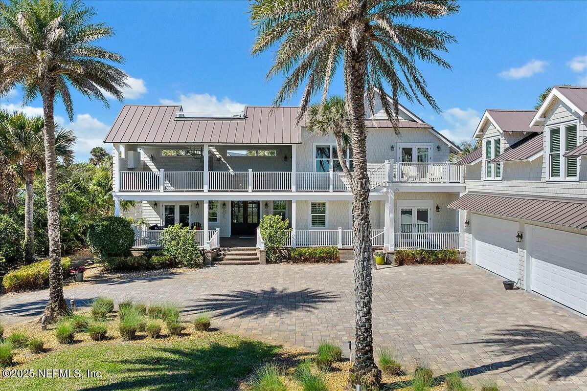 Ponte Vedra Blvd exudes Southern charm from the moment you arrive, welcoming you home with its timeless elegance. Enjoy breathtaking ocean views from three levels, with expansive front porches and decks perfect for soaking in the coastal breeze. Across the street, resident beach access invites you to enjoy the sand and surf at your leisure. Designed for the car enthusiast, the property features an oversized driveway and a six-car heated and cooled garage. Noteworthy features: an oversized 110′ on the Blvd, the home was taken down to the studs in 2015, hurricane rated windows, spray foam insulation, metal roof, and 3 surround sound systems. Inside, natural light floods the space, highlighting solid wood floors, custom beams, and tongue-and-groove ceilings. The chef’s kitchen boasts handcrafted cabinetry, Thermador appliances, natural stone countertops, a butler’s pantry, and a wet bar. The first-floor primary suite is a private retreat, overlooking the pool with vaulted ceilings. Upstairs, a 2nd family room leads to three guest bedrooms and opens onto an expansive second-floor ocean-view deck and crow’s nest, where stunning panoramic vistas await. Outside, the resort-style living area is designed for entertainment, featuring a tranquil pool and spa, a covered lanai, a summer kitchen, and an outdoor shower. Completing this exceptional property is a separate two bedroom, 1.5 bath garage apartment with ocean views and a private entrance. This gated property, located between the Ponte Vedra Inn & Club and The Lodge & Club, is a true retreat offering endless opportunities to create cherished beachside memories for years to come.