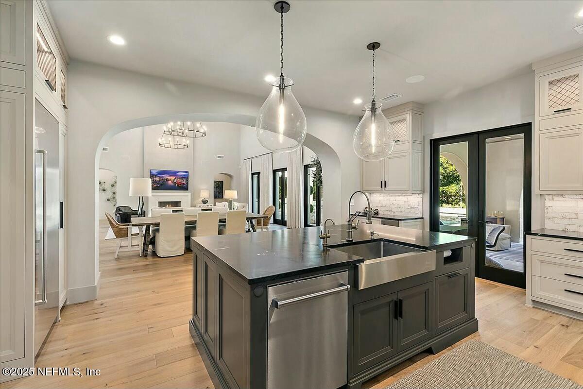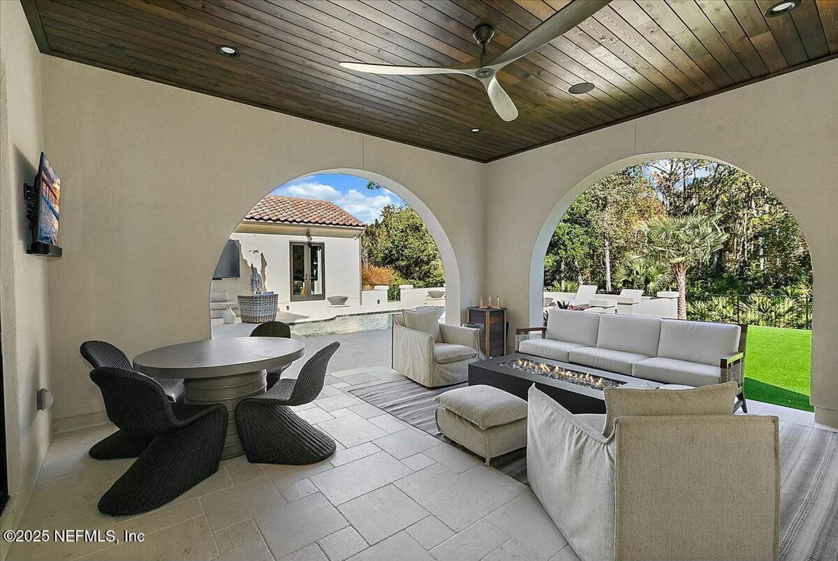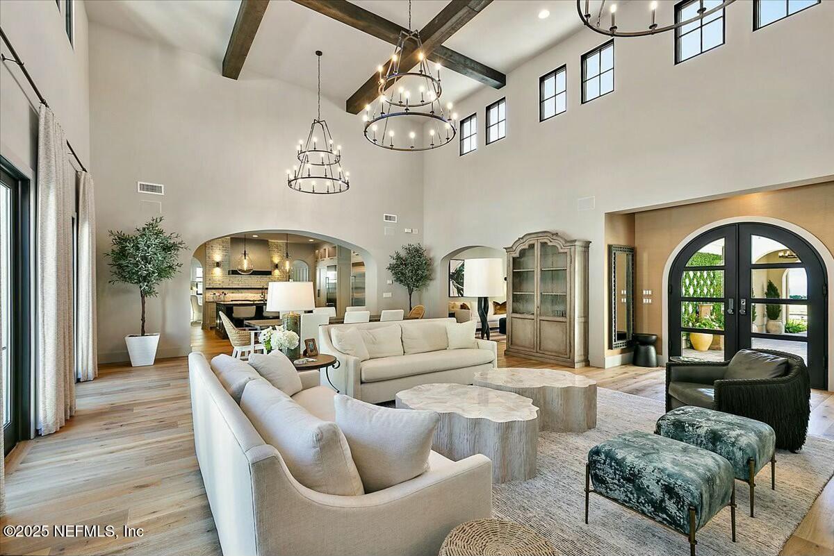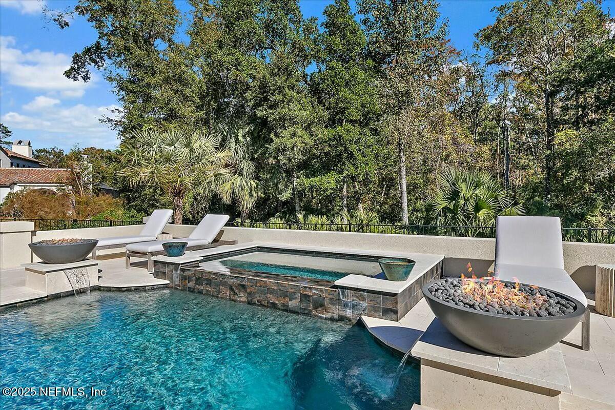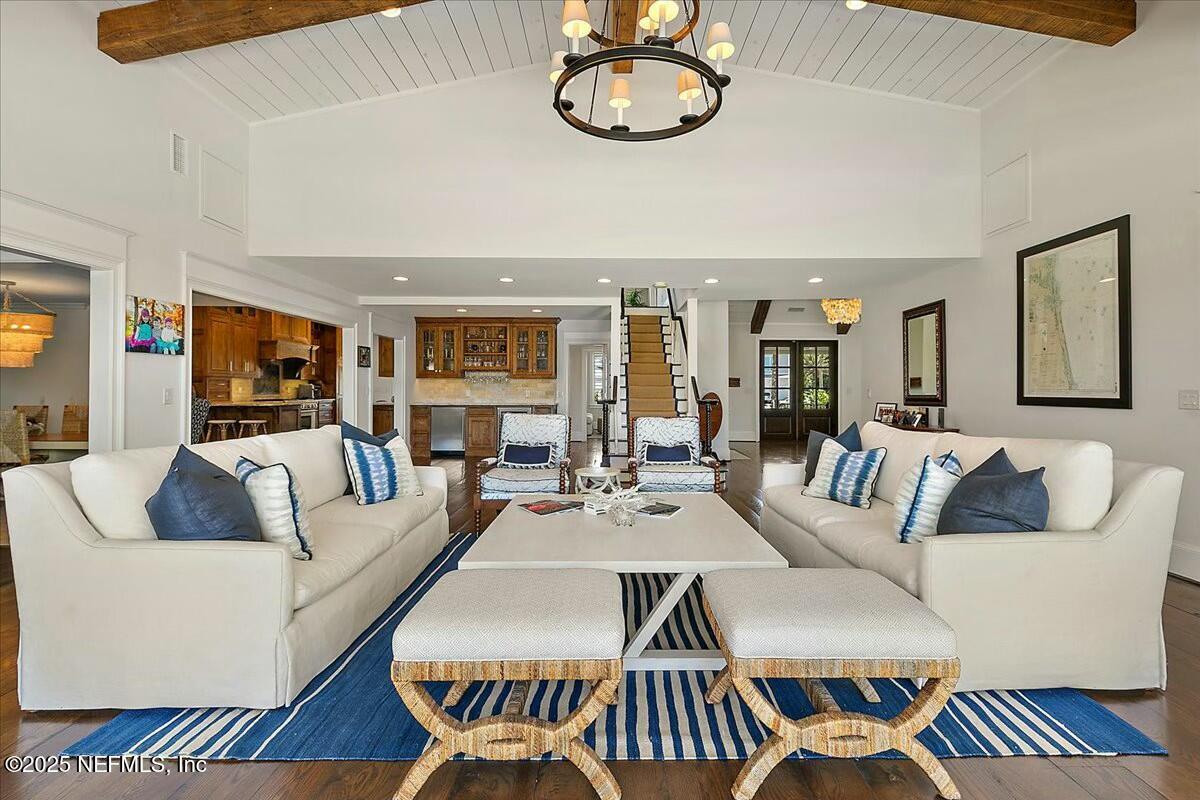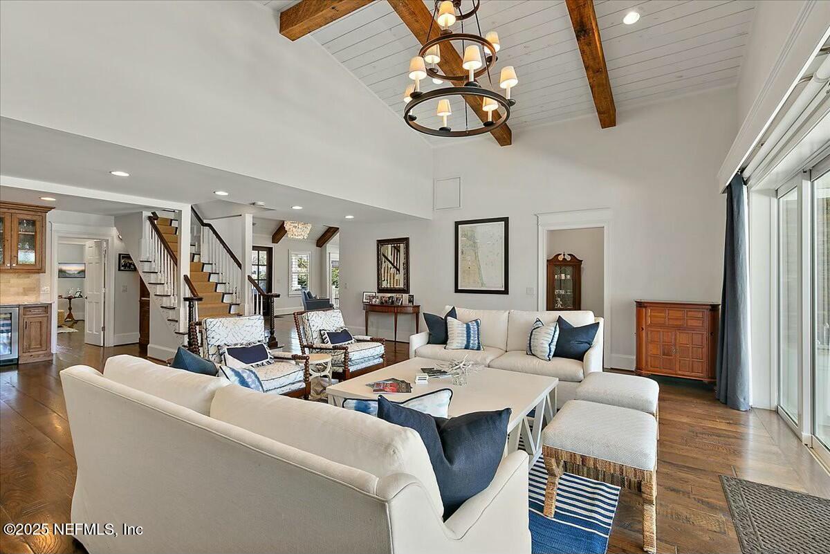 Ponte Vedra Blvd exudes Southern charm from the moment you arrive, welcoming you home with its timeless elegance. Enjoy breathtaking ocean views from three levels, with expansive front porches and decks perfect for soaking in the coastal breeze. Across the street, resident beach access invites you to enjoy the sand and surf at your leisure. Designed for the car enthusiast, the property features an oversized driveway and a six-car heated and cooled garage. Noteworthy features: an oversized 110′ on the Blvd, the home was taken down to the studs in 2015, hurricane rated windows, spray foam insulation, metal roof, and 3 surround sound systems. Inside, natural light floods the space, highlighting solid wood floors, custom beams, and tongue-and-groove ceilings. The chef’s kitchen boasts handcrafted cabinetry, Thermador appliances, natural stone countertops, a butler’s pantry, and a wet bar. The first-floor primary suite is a private retreat, overlooking the pool with vaulted ceilings. Upstairs, a 2nd family room leads to three guest bedrooms and opens onto an expansive second-floor ocean-view deck and crow’s nest, where stunning panoramic vistas await. Outside, the resort-style living area is designed for entertainment, featuring a tranquil pool and spa, a covered lanai, a summer kitchen, and an outdoor shower. Completing this exceptional property is a separate two bedroom, 1.5 bath garage apartment with ocean views and a private entrance. This gated property, located between the Ponte Vedra Inn & Club and The Lodge & Club, is a true retreat offering endless opportunities to create cherished beachside memories for years to come.