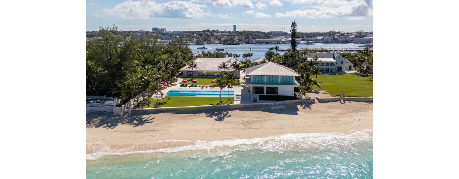 Located on western Paradise Island, Paradise Found is a one-of-a-kind beach-to-harbour estate unlike any other in The Bahamas. Set on 2.41 acres with 200 feet of both beach and harbour frontage, the property is thoughtfully designed with expansive green spaces and a collection of private living areas that capture exceptional views of the beach and Nassau Harbour.